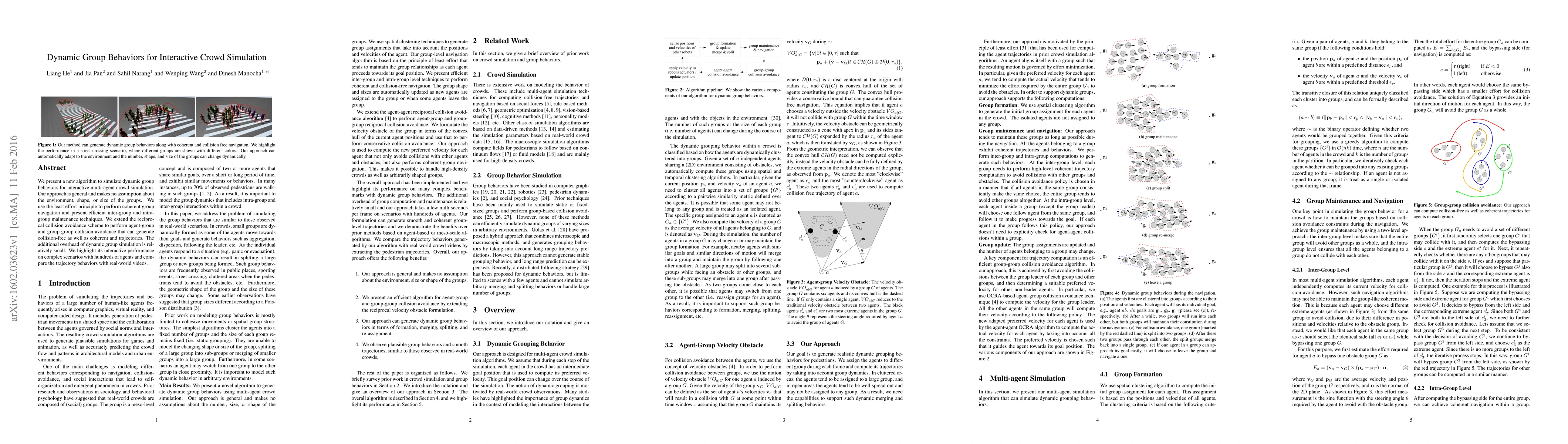 This paper introduces a new algorithm for simulating dynamic group behaviors in interactive crowd simulations, employing the least effort principle for coherent navigation and efficient collision avoidance techniques. The method is general and maintains performance in complex scenarios with hundreds of agents, compared to real-world behaviors.