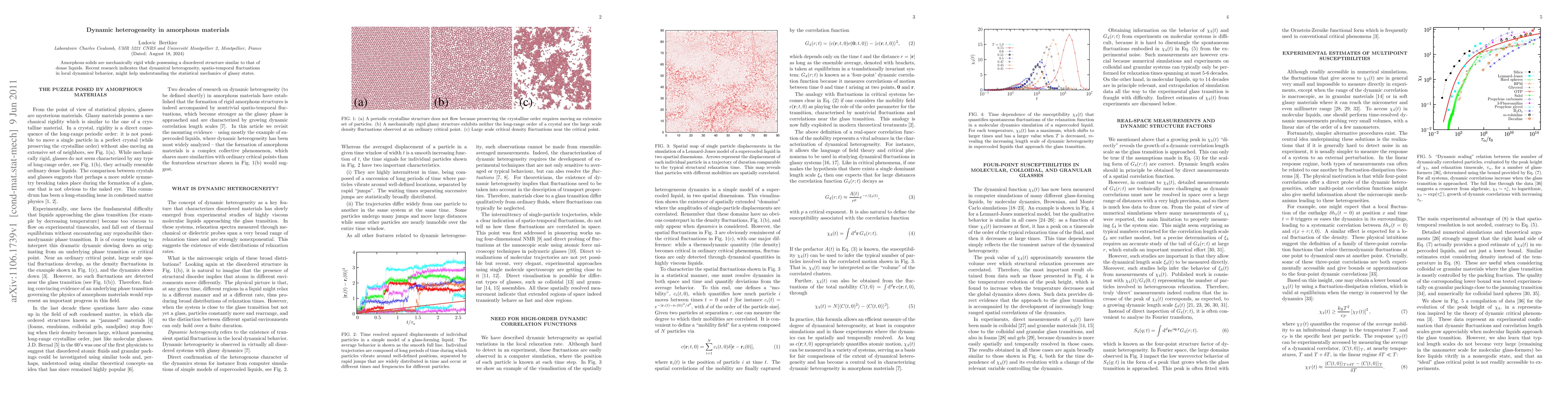 The paper discusses dynamic heterogeneity in amorphous materials using computer simulations and theoretical models, emphasizing the visualization of spatially correlated particle mobilities.