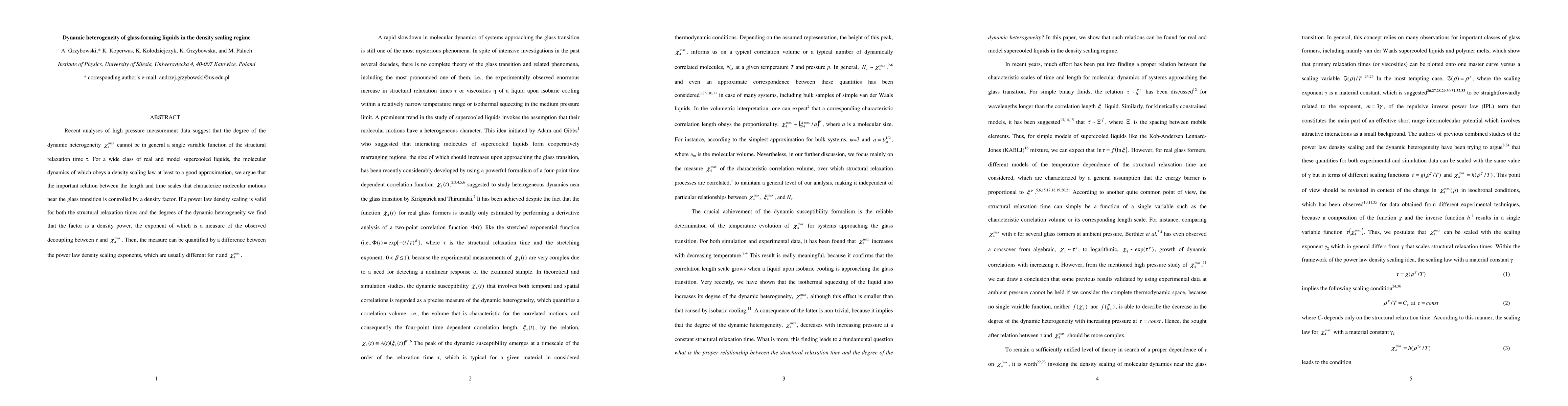 This paper argues that dynamic heterogeneity in glass-forming liquids cannot be solely explained by structural relaxation time, but is influenced by a density factor. The study reveals that the relationship between length and time scales near the glass transition is governed by a density power law, with the degree of decoupling between relaxation time and dynamic heterogeneity quantified by the difference in their respective density scaling exponents.