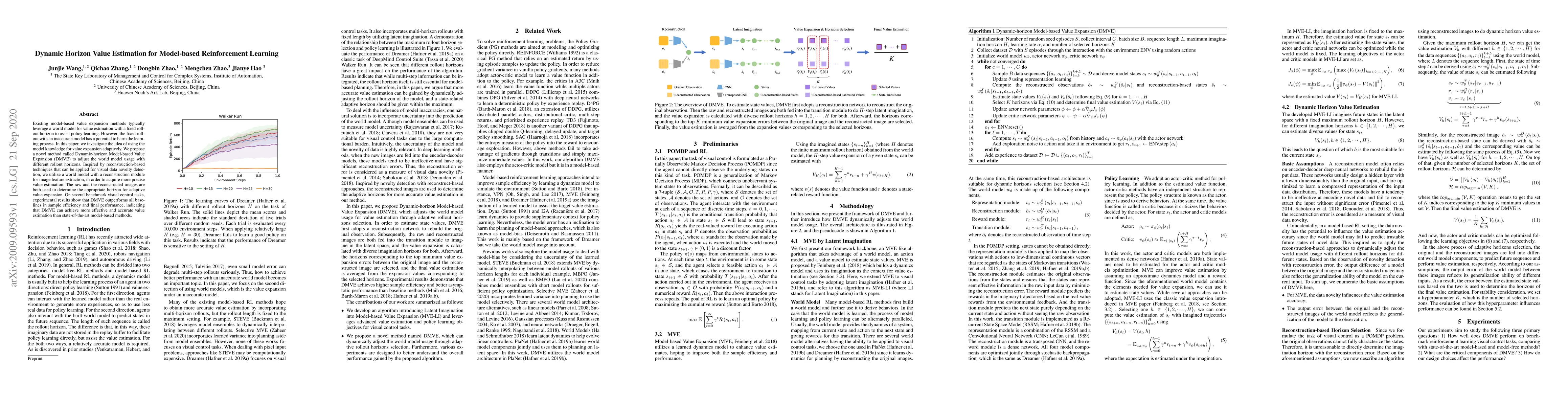 This paper proposes Dynamic-horizon Model-based Value Expansion (DMVE) to adaptively adjust the rollout horizon for value estimation in model-based reinforcement learning, using a reconstruction module to enhance value accuracy. Experimental results show DMVE outperforms baselines in sample efficiency and performance on visual control tasks.