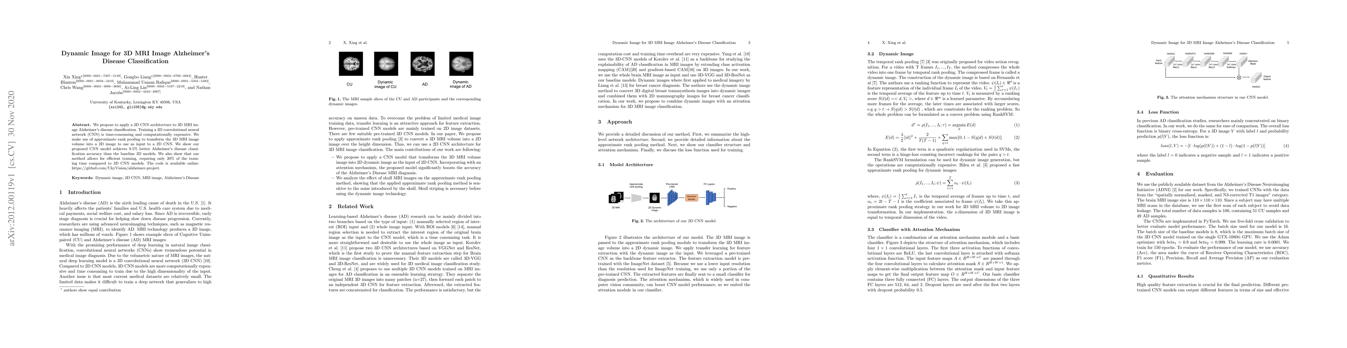 This research proposes using a 2D CNN architecture to classify Alzheimer's disease from 3D MRI images, employing approximate rank pooling to efficiently transform 3D volumes into 2D inputs. The proposed method achieves 9.5% higher accuracy and requires only 20% of the training time compared to traditional 3D CNN models.