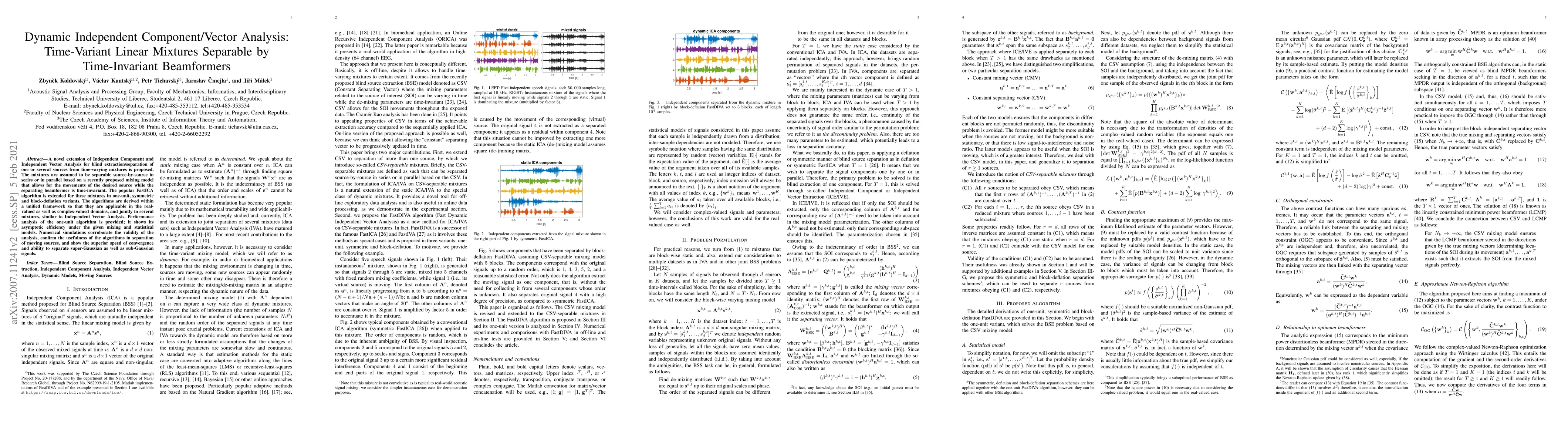 Researchers propose a novel algorithm for separating multiple time-varying sources from mixtures, enabling the tracking of moving sources. The algorithm shows superior speed of convergence and ability to separate both Gaussian and non-Gaussian signals.