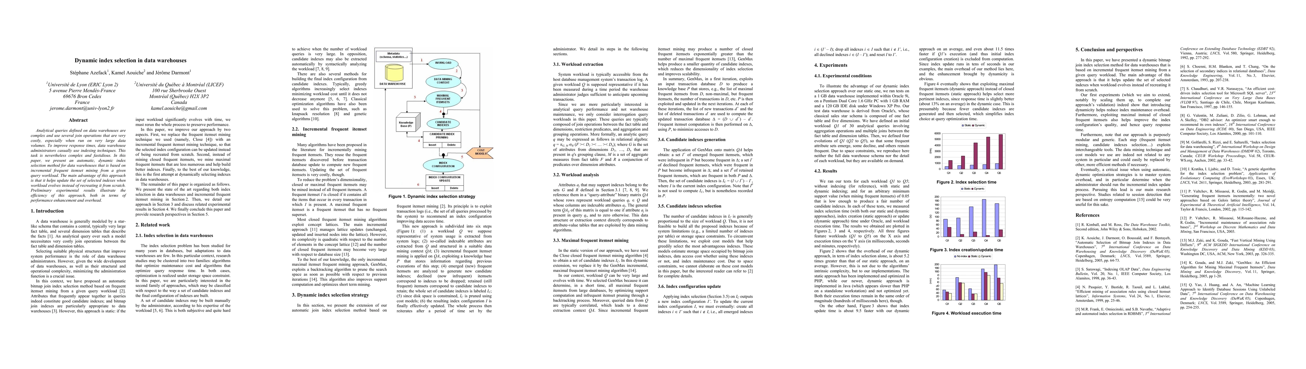 This paper proposes an automatic, dynamic index selection method for data warehouses that uses incremental frequent itemset mining to adapt to evolving query workloads, improving response times without the need for complete index recreation. Preliminary results show enhanced performance and manageable overhead.