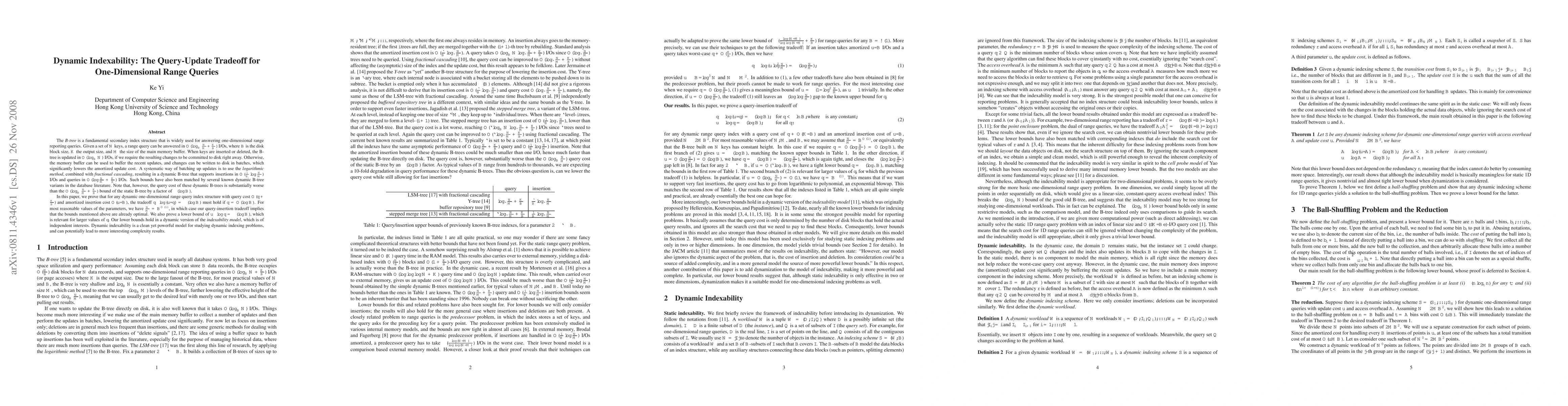 The B-tree is a fundamental secondary index structure that is widely used for answering one-dimensional range reporting queries. Given a set of $N$ keys, a range query can be answered in $O(\log_B \nm + \frac{K}{B})$ I/Os, where $B$ is the disk block size, $K$ the output size, and $M$ the size of the main memory buffer. When keys are inserted or deleted, the B-tree is updated in $O(\log_B N)$ I/Os, if we require the resulting changes to be committed to disk right away. Otherwise, the memory buffer can be used to buffer the recent updates, and changes can be written to disk in batches, which significantly lowers the amortized update cost. A systematic way of batching up updates is to use the logarithmic method, combined with fractional cascading, resulting in a dynamic B-tree that supports insertions in $O(\frac{1}{B}\log\nm)$ I/Os and queries in $O(\log\nm + \frac{K}{B})$ I/Os. Such bounds have also been matched by several known dynamic B-tree variants in the database literature. In this paper, we prove that for any dynamic one-dimensional range query index structure with query cost $O(q+\frac{K}{B})$ and amortized insertion cost $O(u/B)$, the tradeoff $q\cdot \log(u/q) = \Omega(\log B)$ must hold if $q=O(\log B)$. For most reasonable values of the parameters, we have $\nm = B^{O(1)}$, in which case our query-insertion tradeoff implies that the bounds mentioned above are already optimal. Our lower bounds hold in a dynamic version of the {\em indexability model}, which is of independent interests.