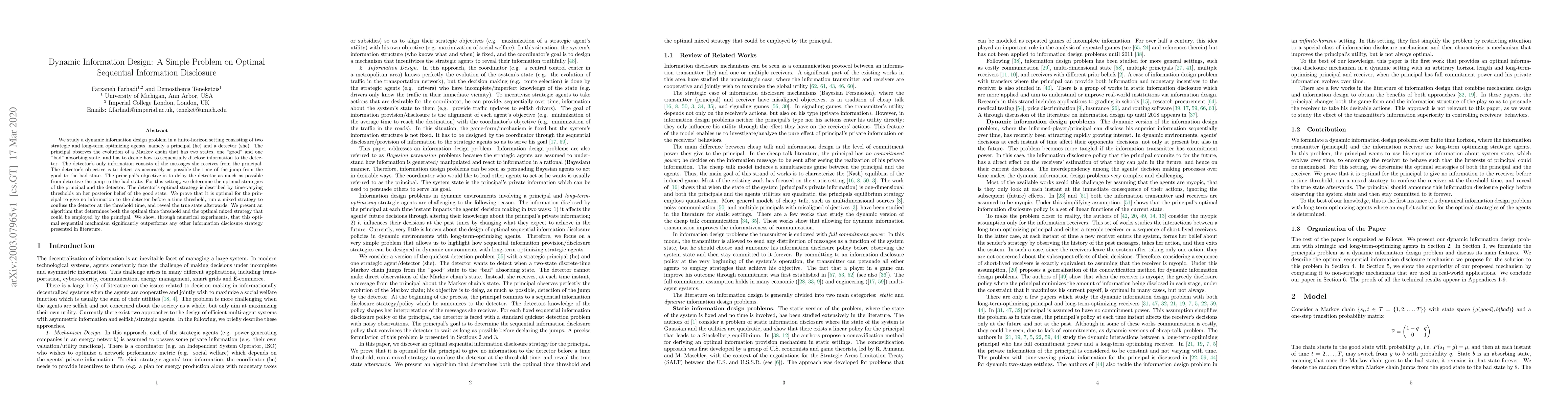 This paper investigates optimal sequential information disclosure strategies in a dynamic setting with two agents, where the principal aims to delay the detector from identifying a transition from a "good" to a "bad" state. The optimal strategy involves withholding information until a threshold time, then employing a mixed strategy to confuse the detector before revealing the true state.