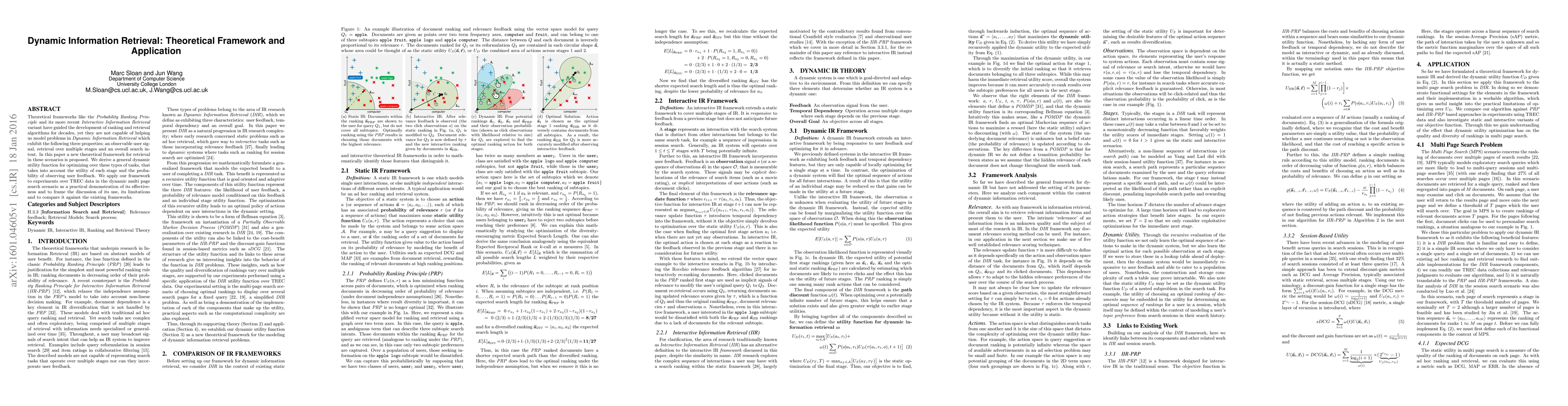 Theoretical frameworks like the Probability Ranking Principle and its more recent Interactive Information Retrieval variant have guided the development of ranking and retrieval algorithms for decades, yet they are not capable of helping us model problems in Dynamic Information Retrieval which exhibit the following three properties; an observable user signal, retrieval over multiple stages and an overall search intent. In this paper a new theoretical framework for retrieval in these scenarios is proposed. We derive a general dynamic utility function for optimizing over these types of tasks, that takes into account the utility of each stage and the probability of observing user feedback. We apply our framework to experiments over TREC data in the dynamic multi page search scenario as a practical demonstration of its effectiveness and to frame the discussion of its use, its limitations and to compare it against the existing frameworks.