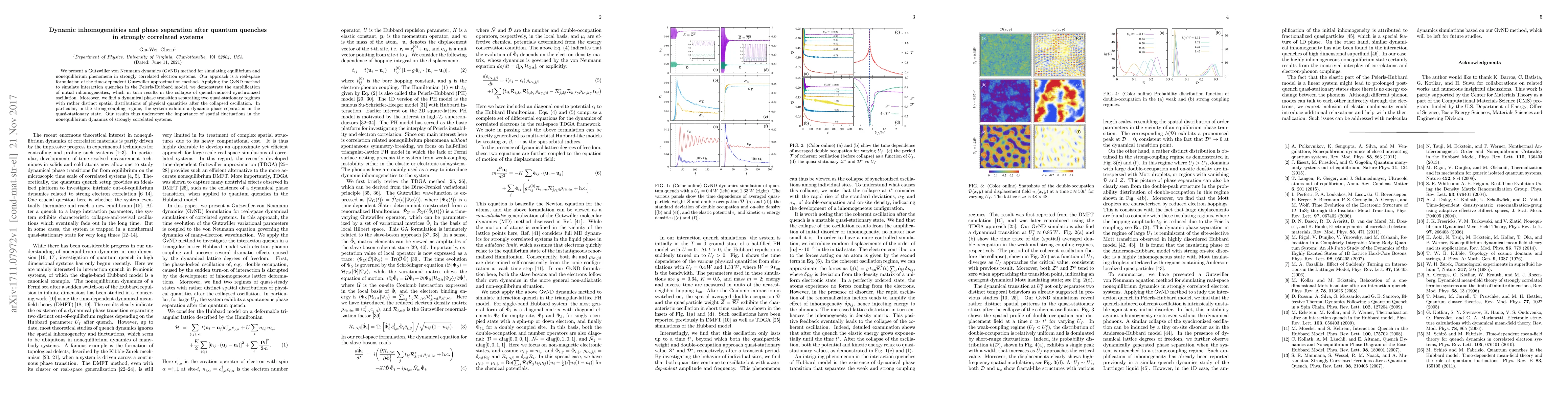 This paper introduces a Gutzwiller von Neumann dynamics (GvND) method to simulate nonequilibrium phenomena in strongly correlated systems. The study reveals that quantum quenches amplify initial inhomogeneities, leading to collapsed synchronized oscillations and a dynamical phase transition, with phase separation emerging in the strong-coupling regime.