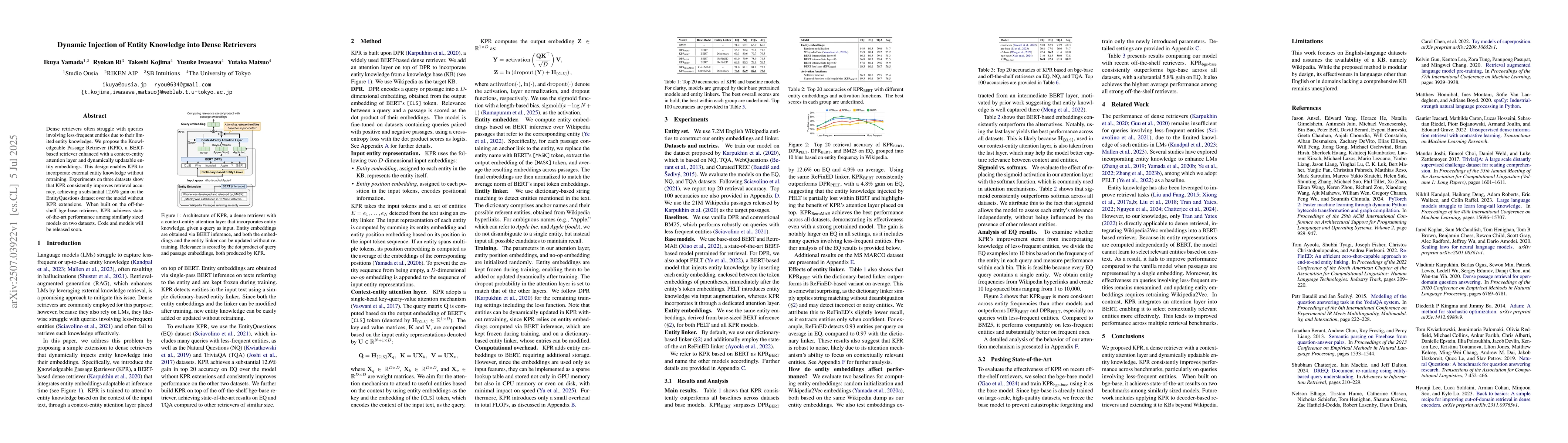 Dense retrievers often struggle with queries involving less-frequent entities due to their limited entity knowledge. We propose the Knowledgeable Passage Retriever (KPR), a BERT-based retriever enhanced with a context-entity attention layer and dynamically updatable entity embeddings. This design enables KPR to incorporate external entity knowledge without retraining. Experiments on three datasets show that KPR consistently improves retrieval accuracy, achieving a substantial 12.6% gain on the EntityQuestions dataset over the model without KPR extensions. When built on the off-the-shelf bge-base retriever, KPR achieves state-of-the-art performance among similarly sized models on two datasets. Code and models will be released soon.