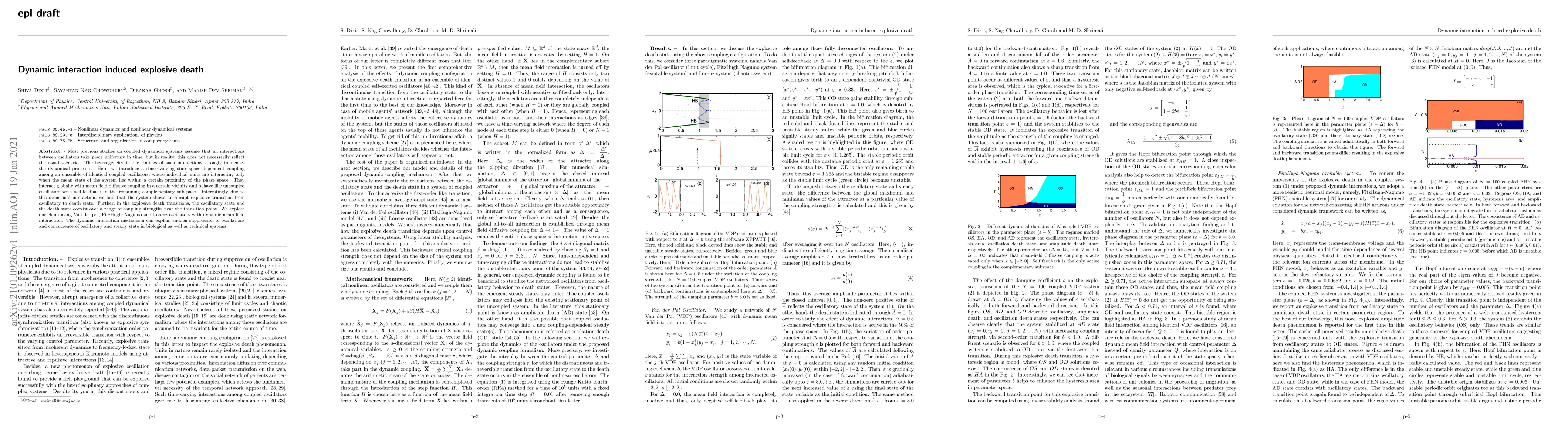 Most previous studies on coupled dynamical systems assume that all interactions between oscillators take place uniformly in time, but in reality, this does not necessarily reflect the usual scenario. The heterogeneity in the timings of such interactions strongly influences the dynamical processes. Here, we introduce a time-evolving state-space dependent coupling among an ensemble of identical coupled oscillators, where individual units are interacting only when the mean state of the system lies within a certain proximity of the phase space. They interact globally with mean-field diffusive coupling in a certain vicinity and behave like uncoupled oscillators with self-feedback in the remaining complementary subspace. Interestingly due to this occasional interaction, we find that the system shows an abrupt explosive transition from oscillatory to death state. Further, in the explosive death transitions, the oscillatory state and the death state coexist over a range of coupling strengths near the transition point. We explore our claim using Van der pol, FitzHughNagumo and Lorenz oscillators with dynamic mean field interaction. The dynamic interaction mechanism can explain sudden suppression of oscillations and concurrence of oscillatory and steady state in biological as well as technical systems.