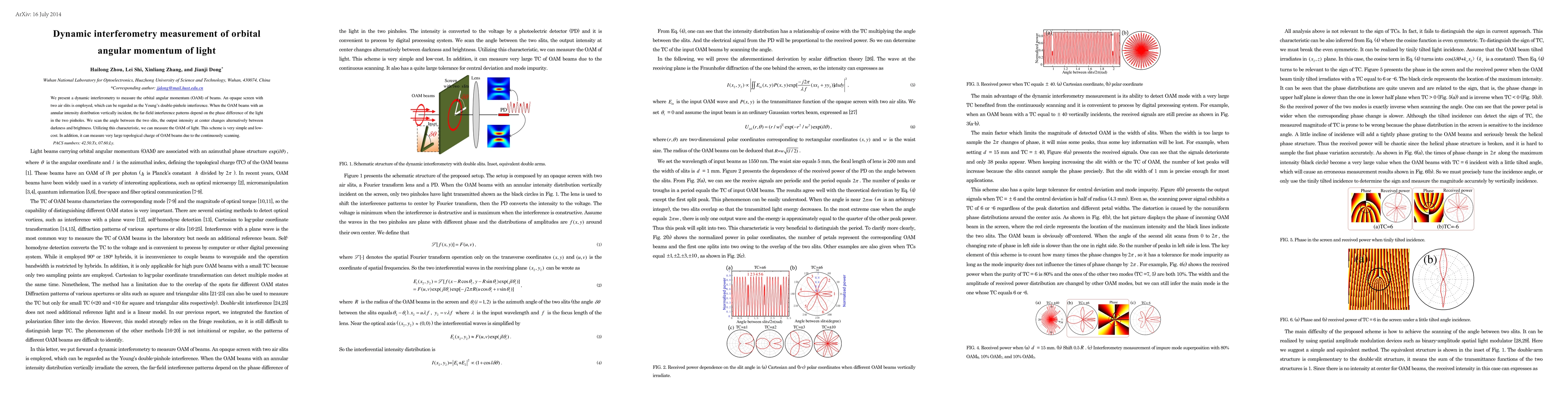 This paper introduces a simple, low-cost dynamic interferometry method for measuring the orbital angular momentum (OAM) of light using an opaque screen with two air slits. The method relies on observing the interference pattern changes as the angle between the slits is varied, allowing for the measurement of large topological charges of OAM beams.