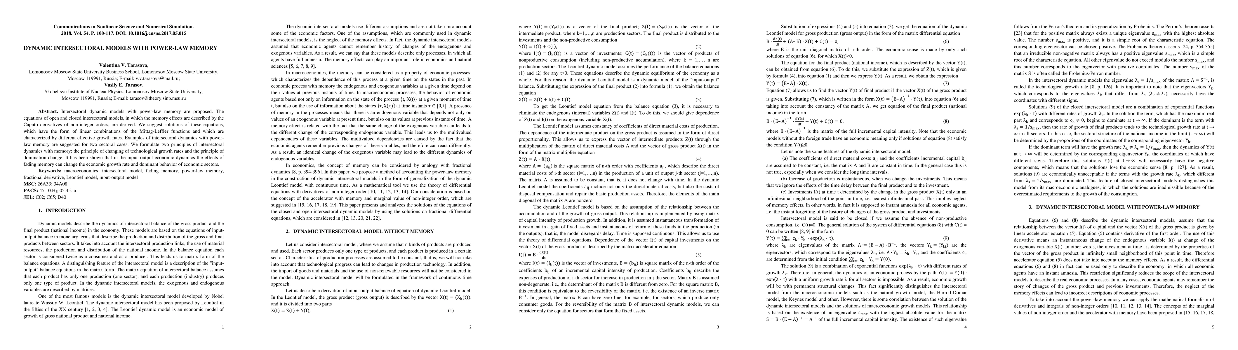 Intersectoral dynamic models with power-law memory have been proposed to describe economic systems with changing growth rates and dominant behavior; these models can alter the economic growth rate and sectoral dominance.
