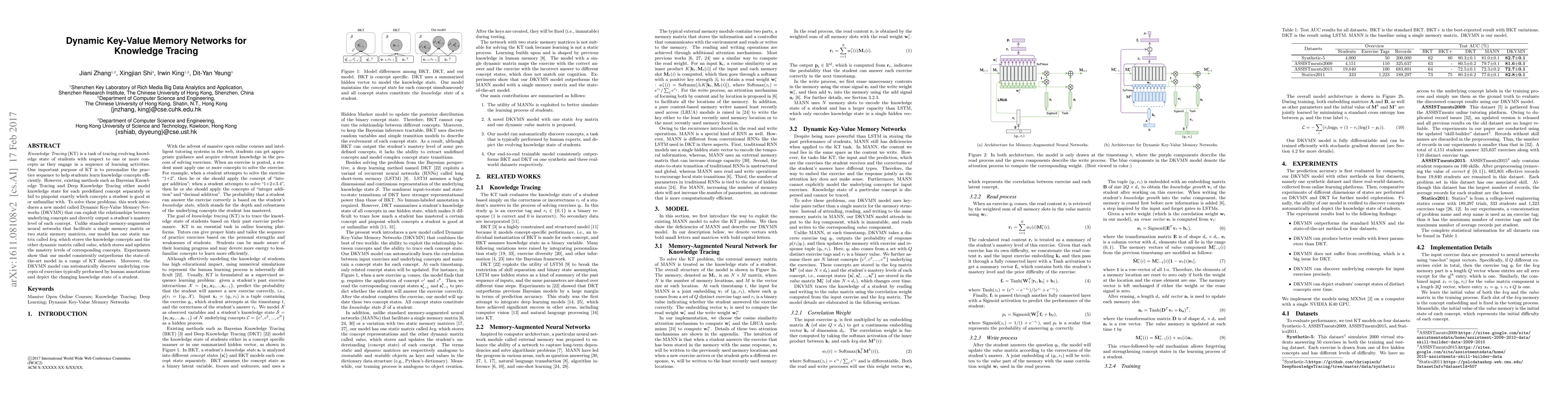 The paper proposes Dynamic Key-Value Memory Networks (DKVMN) for Knowledge Tracing to better personalize learning sequences by accurately tracking students' mastery levels of concepts. Unlike existing methods, DKVMN uses a static key matrix and a dynamic value matrix to capture relationships between concepts and update mastery levels, achieving superior performance over state-of-the-art models.