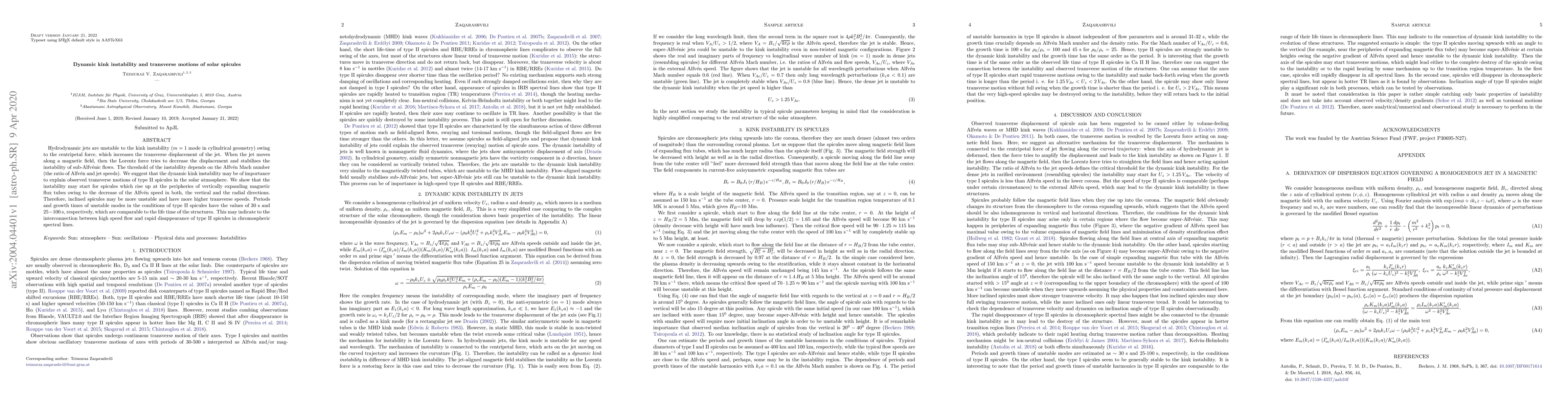 This study investigates dynamic kink instability in solar spicules, finding that inclined spicules may be more unstable with higher transverse speeds, and the instability can lead to rapid disappearance of type II spicules.