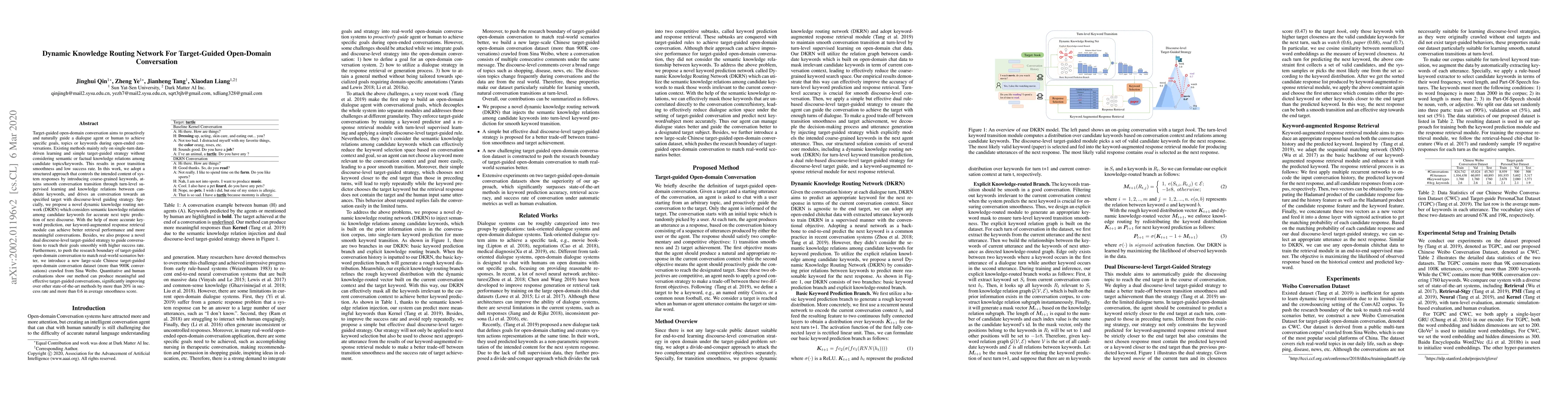 This paper proposes a Dynamic Knowledge Routing Network (DKRN) to enhance target-guided open-domain conversations by leveraging semantic knowledge relations among keywords for smoother transitions and higher success rates. The method introduces a large-scale Chinese dataset and achieves notable improvements over existing methods in both success rate and conversation smoothness.
