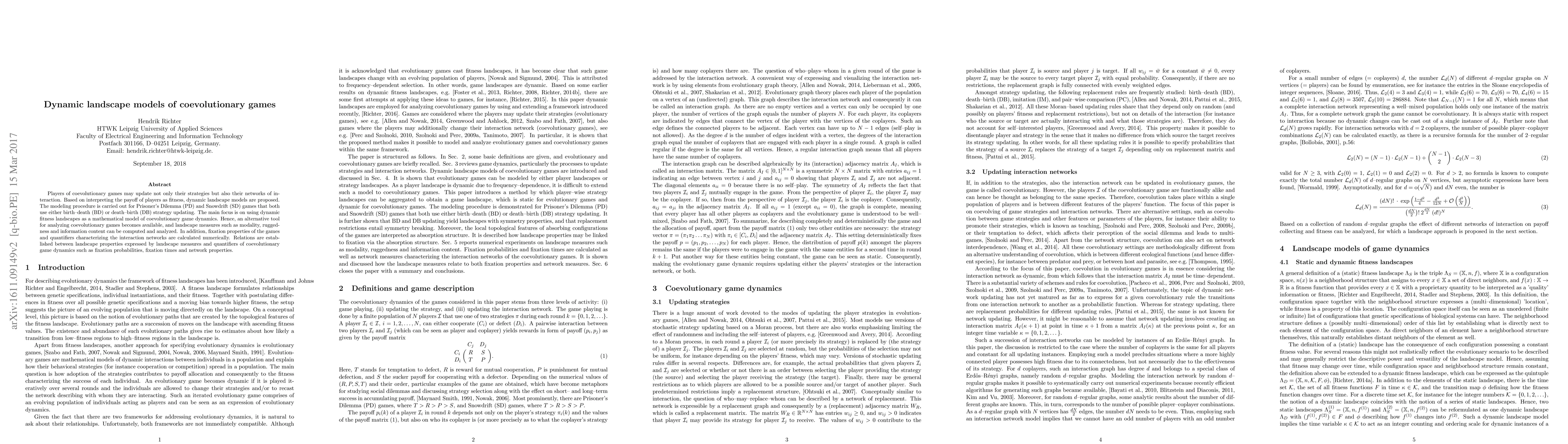 The paper introduces dynamic landscape models for coevolutionary games, demonstrating how landscape measures can differentiate between various game landscapes and correlate with fixation properties and network characteristics.