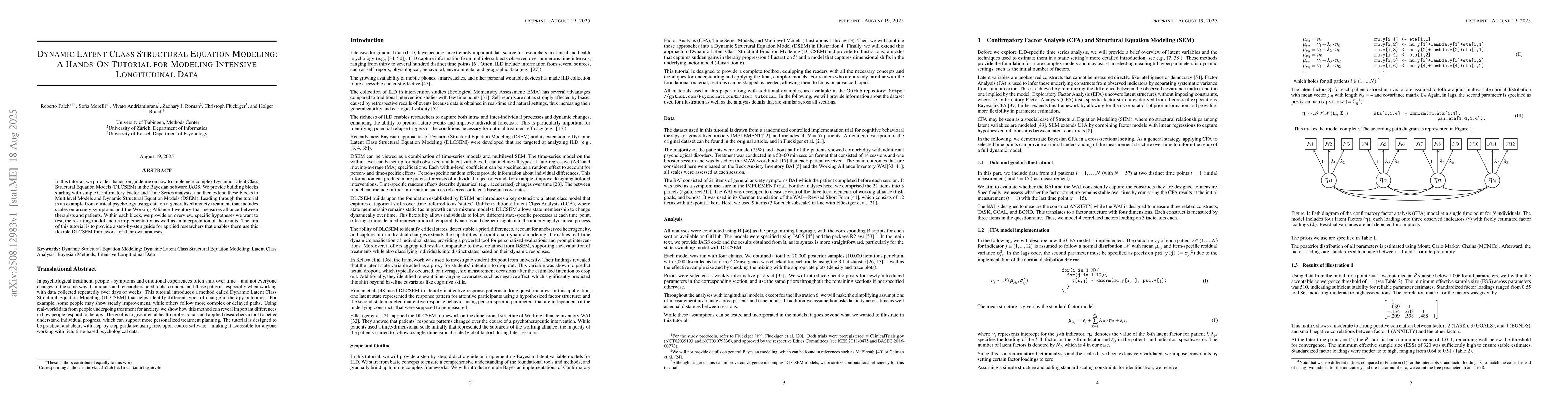 In this tutorial, we provide a hands-on guideline on how to implement complex Dynamic Latent Class Structural Equation Models (DLCSEM) in the Bayesian software JAGS. We provide building blocks starting with simple Confirmatory Factor and Time Series analysis, and then extend these blocks to Multilevel Models and Dynamic Structural Equation Models (DSEM). Leading through the tutorial is an example from clinical psychology using data on a generalized anxiety treatment that includes scales on anxiety symptoms and the Working Alliance Inventory that measures alliance between therapists and patients. Within each block, we provide an overview, specific hypotheses, we want to test, the resulting model and its implementation as well as an interpretation of the results. The aim of this tutorial is to provide a step-by-step guide for applied researchers that enables them use this flexible DLCSEM framework for their own analyses.