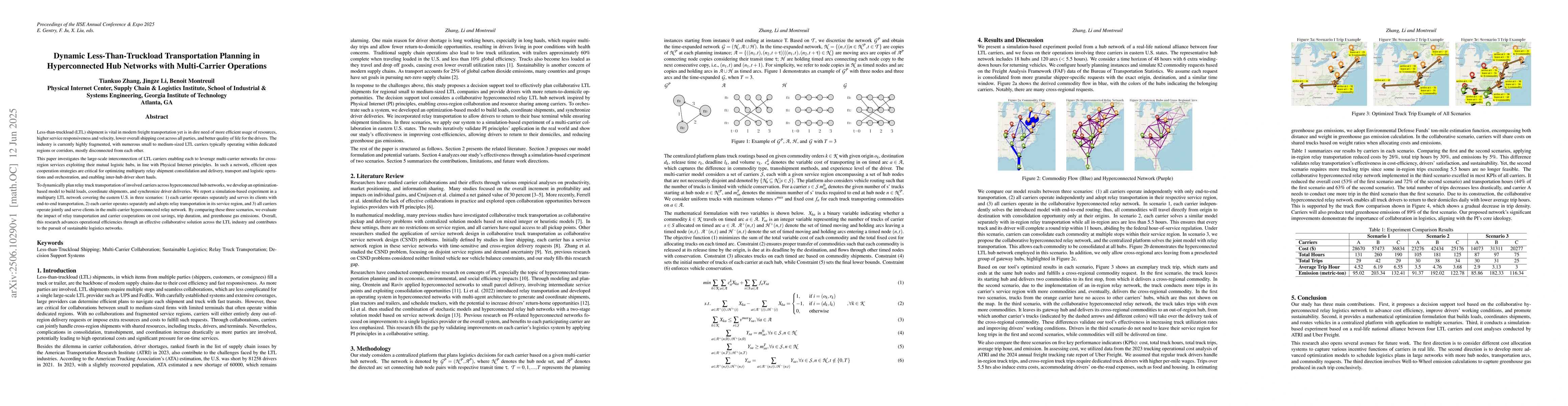 This research develops an optimization-based model to improve efficiency in less-than-truckload transportation planning across a hyperconnected network of LTL carriers, aiming for cost savings, reduced emissions, and enhanced driver experience.