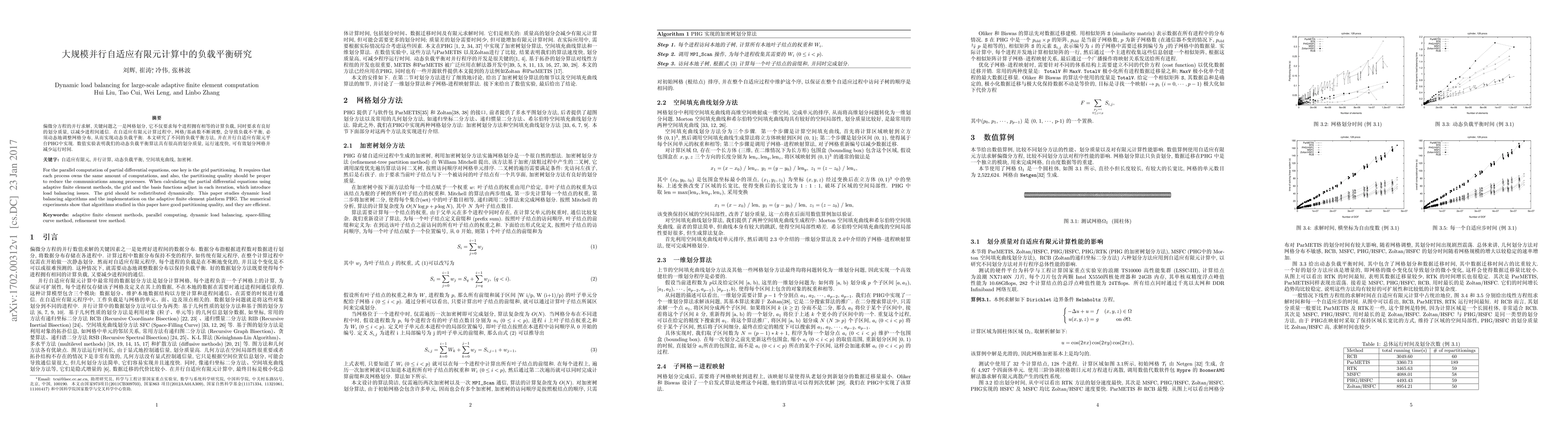 This paper explores dynamic load balancing algorithms for adaptive finite element computations in parallel computing, focusing on grid partitioning to ensure equal computational load and minimize inter-process communication. Implemented on the PHG platform, the proposed algorithms demonstrate effective partitioning quality and efficiency in numerical experiments.