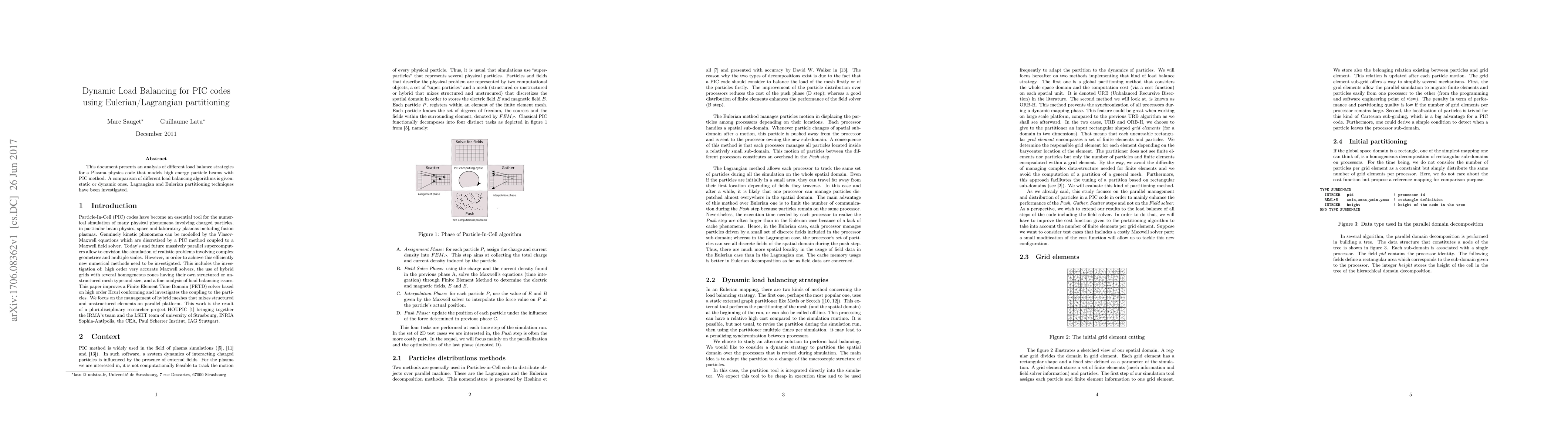 Summary: This paper analyzes load balancing strategies for a plasma physics code using the PIC method, comparing static and dynamic algorithms. It investigates Lagrangian and Eulerian partitioning techniques to optimize performance in modeling high energy particle beams.