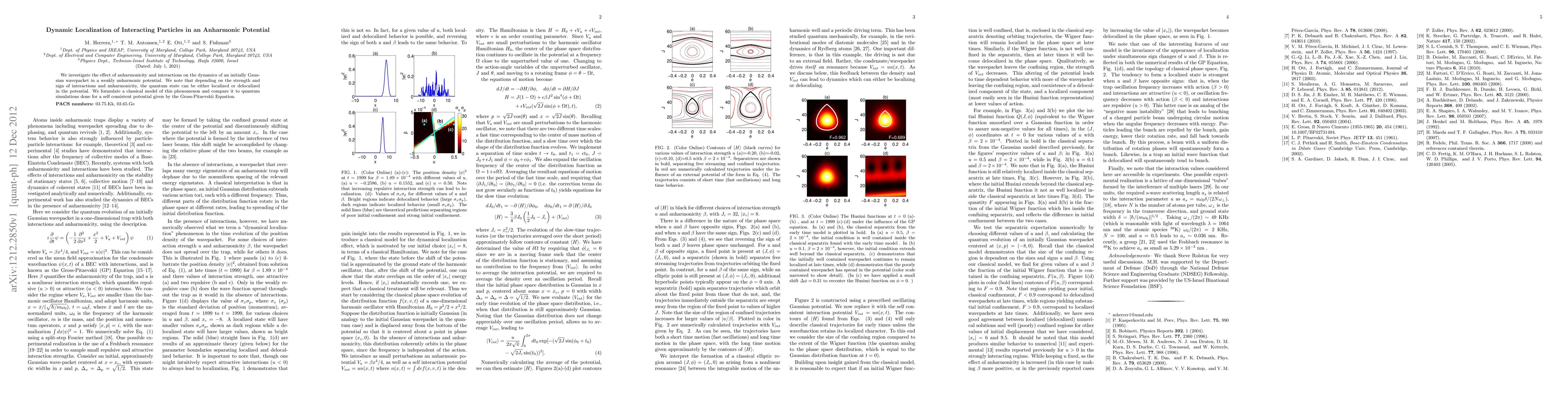 We investigate the effect of anharmonicity and interactions on the dynamics of an initially Gaussian wavepacket in a weakly anharmonic potential. We note that depending on the strength and sign of interactions and anharmonicity, the quantum state can be either localized or delocalized in the potential. We formulate a classical model of this phenomenon and compare it to quantum simulations done for a self consistent potential given by the Gross-Pitaevskii Equation.