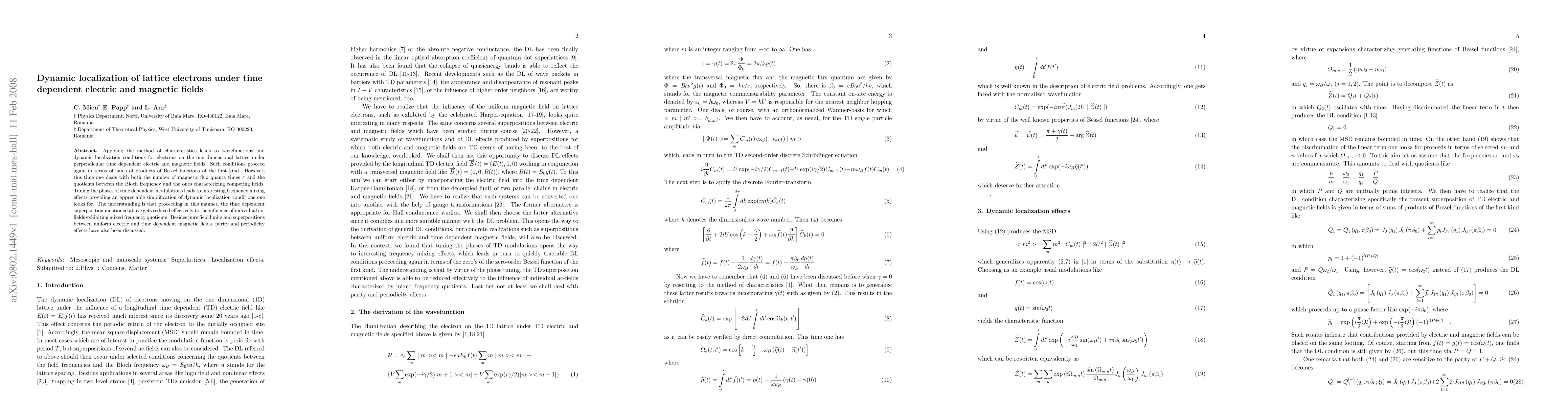 This paper explores the dynamic localization of electrons on a one-dimensional lattice under time-dependent electric and magnetic fields, utilizing the method of characteristics. It reveals localization conditions expressed in terms of Bessel functions, influenced by magnetic flux quanta and frequency ratios, and highlights how phase tuning can simplify these conditions.