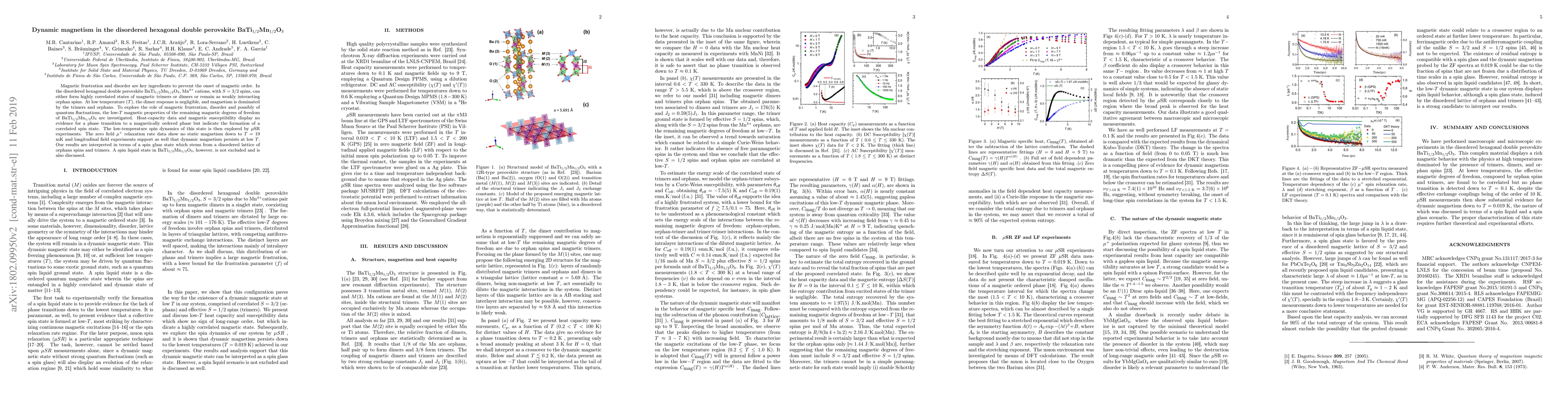 Magnetic frustration and disorder are key ingredients to prevent the onset of magnetic order. In the disordered hexagonal double perovskite BaTi$_{1/2}$Mn$_{1/2}$O$_{3}$, Mn$^{4+}$ cations, with $S=3/2$ spins, can either form highly correlated states of magnetic trimers or dimers or remain as weakly interacting orphan spins. At low temperature ($T$), the dimer response is negligible, and magnetism is dominated by the trimers and orphans. To explore the role of magnetic frustration, disorder and possibly of quantum fluctuations, the low-$T$ magnetic properties of the remaining magnetic degrees of freedom of BaTi$_{1/2}$Mn$_{1/2}$O$_{3}$ are investigated. Heat-capacity data and magnetic susceptibility display no evidence for a phase transition to a magnetically ordered phase but indicate the formation of a correlated spin state. The low-temperature spin dynamics of this state is then explored by $\mu$SR experiments. The zero field $\mu^{+}$ relaxation rate data show no static magnetism down to $T=19$ mK and longitudinal field experiments support as well that dynamic magnetism persists at low $T$. Our results are interpreted in terms of a spin glass state which stems from a disordered lattice of orphans spins and trimers. A spin liquid state in BaTi$_{1/2}$Mn$_{1/2}$O$_{3}$, however, is not excluded and is also discussed.