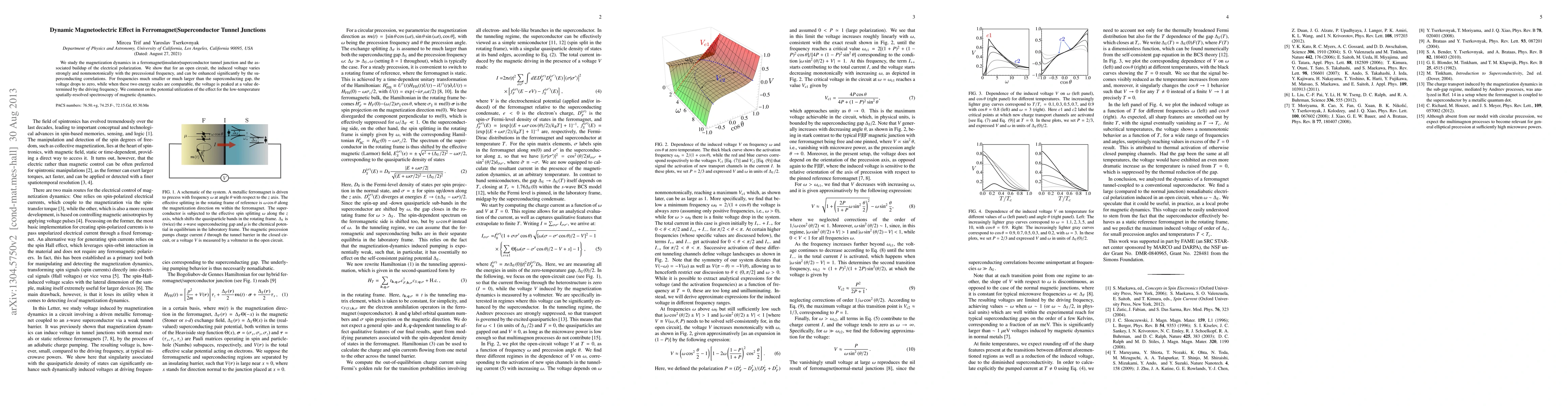 Researchers discovered a dynamic magnetoelectric effect in ferromagnet-superconductor tunnel junctions, showing that the induced voltage varies with precessional frequency and can be enhanced by superconducting correlations.