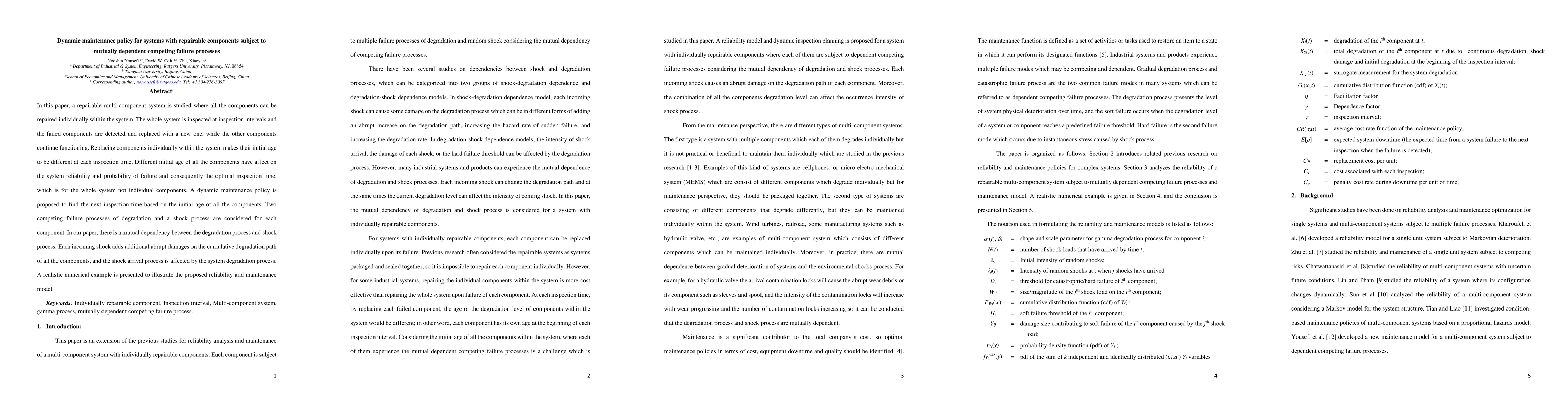This paper proposes a dynamic maintenance policy for a repairable multi-component system where components are inspected and replaced individually, affecting system reliability. It considers two competing failure processes—degradation and shock—with mutual dependency, and uses a realistic example to illustrate the model.