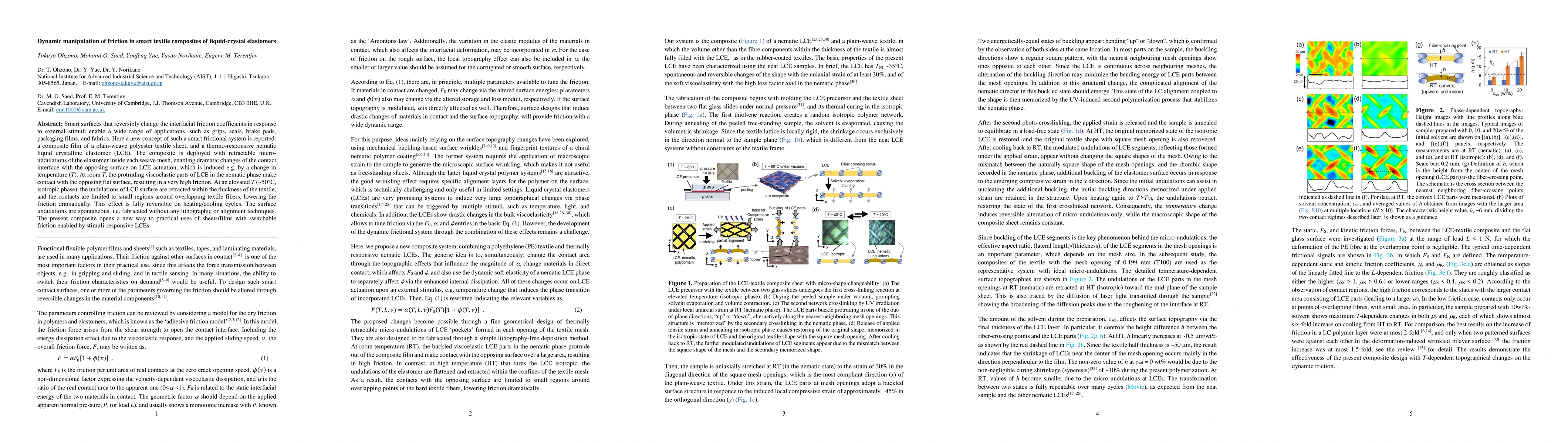 Smart surfaces that reversibly change the interfacial friction coefficients in response to external stimuli enable a wide range of applications, such as grips, seals, brake pads, packaging films, and fabrics. Here a new concept of such a smart frictional system is reported: a composite film of a plain-weave polyester textile sheet, and a thermo-responsive nematic liquid crystalline elastomer (LCE). The composite is deployed with retractable micro-undulations of the elastomer inside each weave mesh, enabling dramatic changes of the contact interface with the opposing surface on LCE actuation, which is induced e.g. by a change in temperature (T). At ambient T, the protruding viscoelastic parts of LCE in the nematic phase make contact with the opposing flat surface, resulting in a very high friction. At an elevated T (50C, isotropic phase), the undulations of LCE surface are retracted within the thickness of the textile, and the contacts are limited to small regions around overlapping textile fibers, lowering the friction dramatically. This effect is fully reversible on heating/cooling cycles. The surface undulations are spontaneous, i.e. fabricated without any lithographic or alignment techniques. The present composite opens a new way to practical uses of sheets/films with switchable friction enabled by stimuli-responsive LCEs.