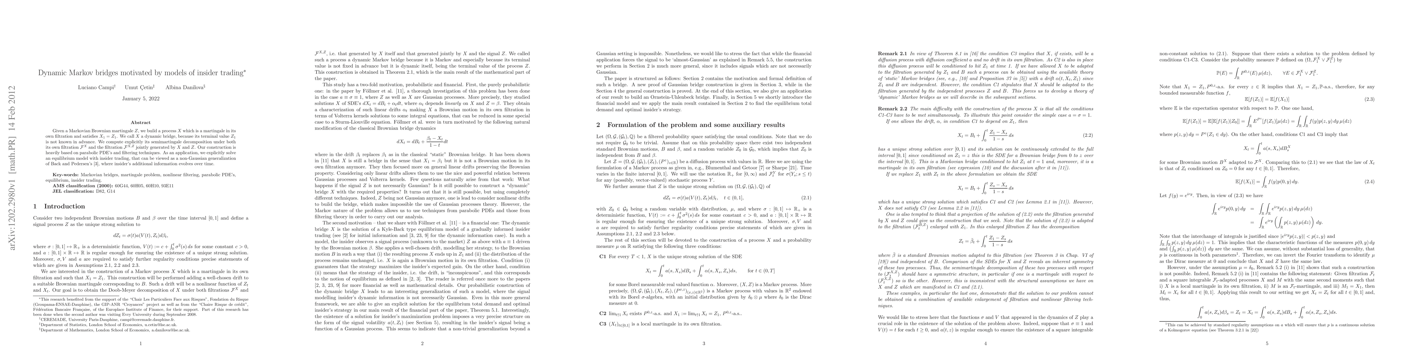 Given a Markovian Brownian martingale $Z$, we build a process $X$ which is a martingale in its own filtration and satisfies $X_1 = Z_1$. We call $X$ a dynamic bridge, because its terminal value $Z_1$ is not known in advance. We compute explicitly its semimartingale decomposition under both its own filtration $\cF^X$ and the filtration $\cF^{X,Z}$ jointly generated by $X$ and $Z$. Our construction is heavily based on parabolic PDE's and filtering techniques. As an application, we explicitly solve an equilibrium model with insider trading, that can be viewed as a non-Gaussian generalization of Back and Pedersen's \cite{BP}, where insider's additional information evolves over time.