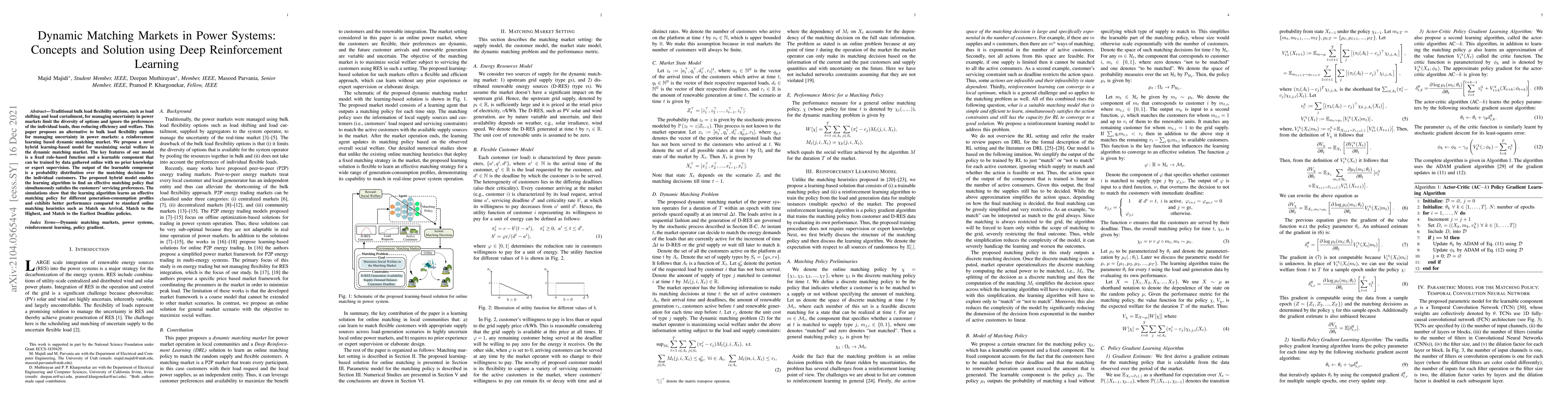This paper introduces a reinforcement learning-based dynamic matching market to enhance power grid efficiency by addressing individual load preferences, contrasting with traditional bulk load flexibility options. The proposed hybrid model combines a fixed rule-based function with a trainable component, achieving superior performance in matching policies compared to standard heuristics.