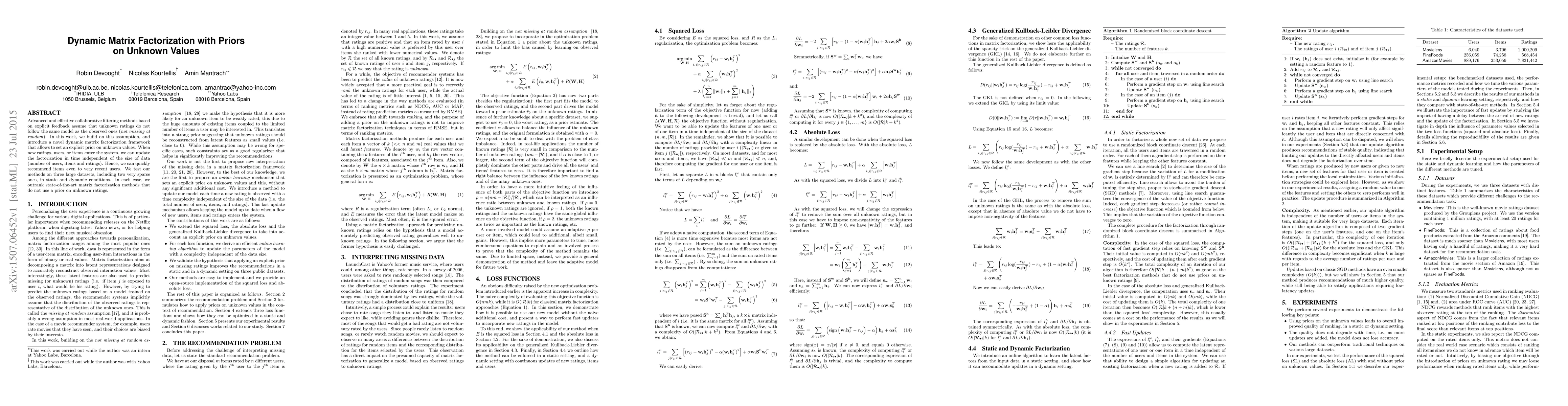 Advanced and effective collaborative filtering methods based on explicit feedback assume that unknown ratings do not follow the same model as the observed ones (\emph{not missing at random}). In this work, we build on this assumption, and introduce a novel dynamic matrix factorization framework that allows to set an explicit prior on unknown values. When new ratings, users, or items enter the system, we can update the factorization in time independent of the size of data (number of users, items and ratings). Hence, we can quickly recommend items even to very recent users. We test our methods on three large datasets, including two very sparse ones, in static and dynamic conditions. In each case, we outrank state-of-the-art matrix factorization methods that do not use a prior on unknown ratings.