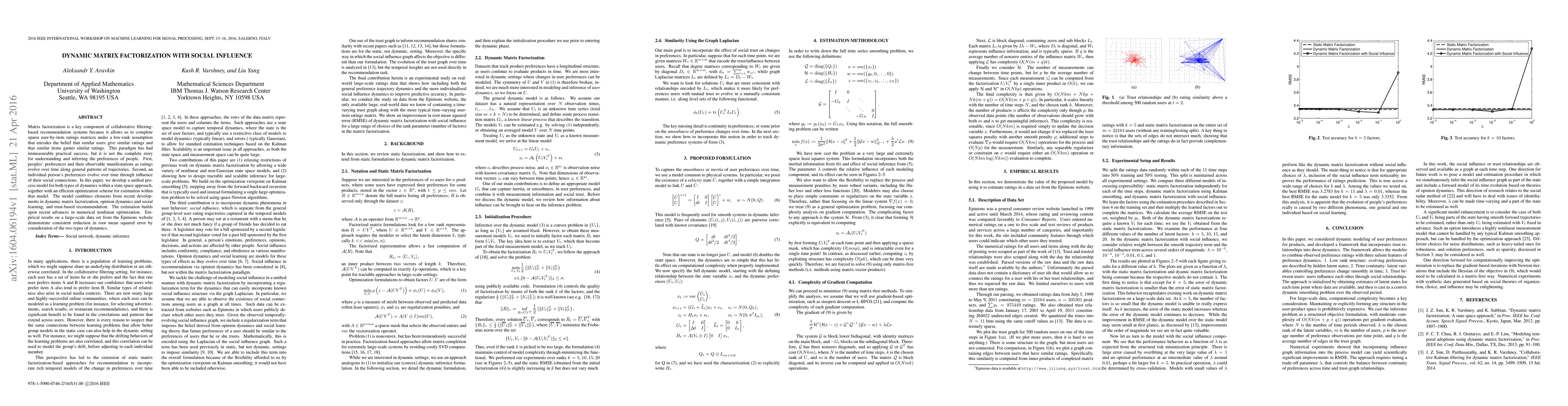 Matrix factorization is a key component of collaborative filtering-based recommendation systems because it allows us to complete sparse user-by-item ratings matrices under a low-rank assumption that encodes the belief that similar users give similar ratings and that similar items garner similar ratings. This paradigm has had immeasurable practical success, but it is not the complete story for understanding and inferring the preferences of people. First, peoples' preferences and their observable manifestations as ratings evolve over time along general patterns of trajectories. Second, an individual person's preferences evolve over time through influence of their social connections. In this paper, we develop a unified process model for both types of dynamics within a state space approach, together with an efficient optimization scheme for estimation within that model. The model combines elements from recent developments in dynamic matrix factorization, opinion dynamics and social learning, and trust-based recommendation. The estimation builds upon recent advances in numerical nonlinear optimization. Empirical results on a large-scale data set from the Epinions website demonstrate consistent reduction in root mean squared error by consideration of the two types of dynamics.
