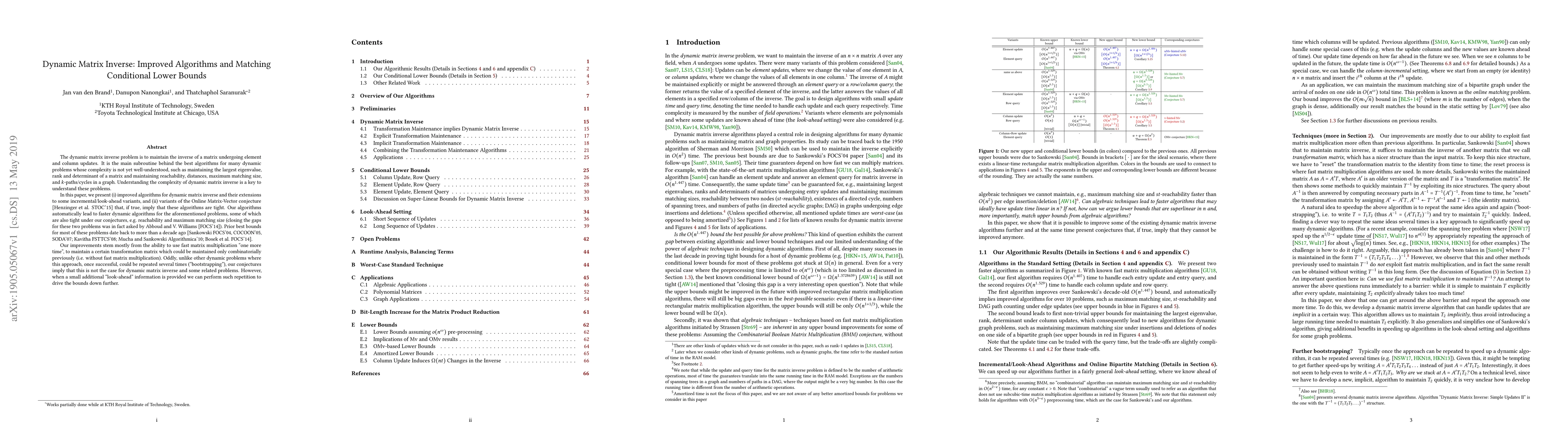 This paper presents improved algorithms for the dynamic matrix inverse problem, which is crucial for maintaining various dynamic properties of matrices and graphs. It also proposes conditional lower bounds suggesting that these new algorithms are optimal under certain conjectures, thus closing the complexity gap for problems like reachability and maximum matching size.