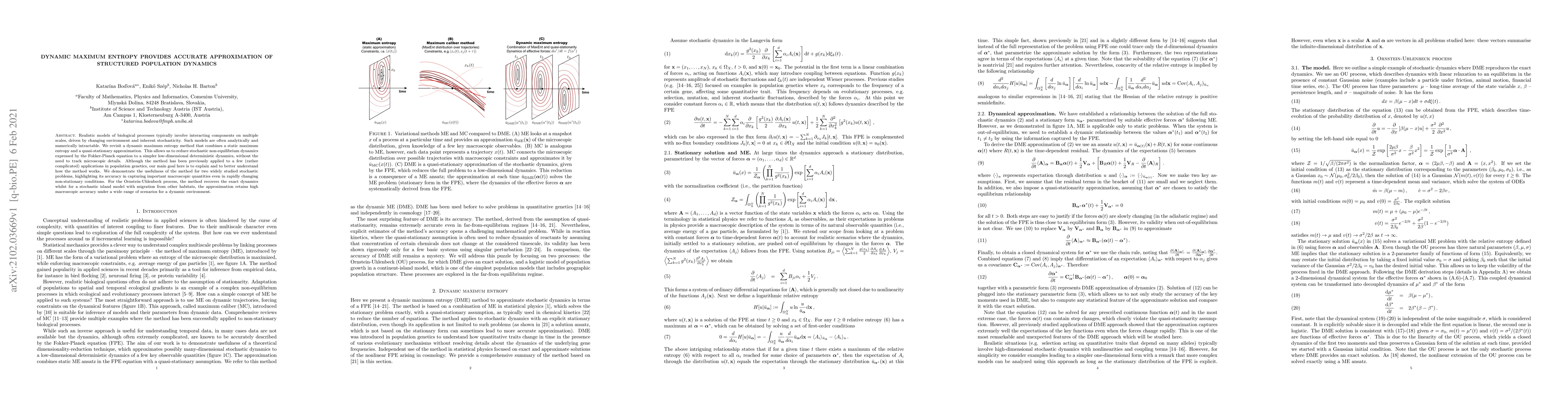 Realistic models of biological processes typically involve interacting components on multiple scales, driven by changing environment and inherent stochasticity. Such models are often analytically and numerically intractable. We revisit a dynamic maximum entropy method that combines a static maximum entropy and a quasi-stationary approximation. This allows us to reduce stochastic non-equilibrium dynamics expressed by the Fokker-Planck equation to a simpler low-dimensional deterministic dynamics, without the need to track microscopic details. Although the method has been previously applied to a few (rather complicated) applications in population genetics, our main goal here is to explain and to better understand how the method works. We demonstrate the usefulness of the method for two widely studied stochastic problems, highlighting its accuracy in capturing important macroscopic quantities even in rapidly changing non-stationary conditions. For the Ornstein-Uhlenbeck process, the method recovers the exact dynamics whilst for a stochastic island model with migration from other habitats, the approximation retains high macroscopic accuracy under a wide range of scenarios for a dynamic environment.