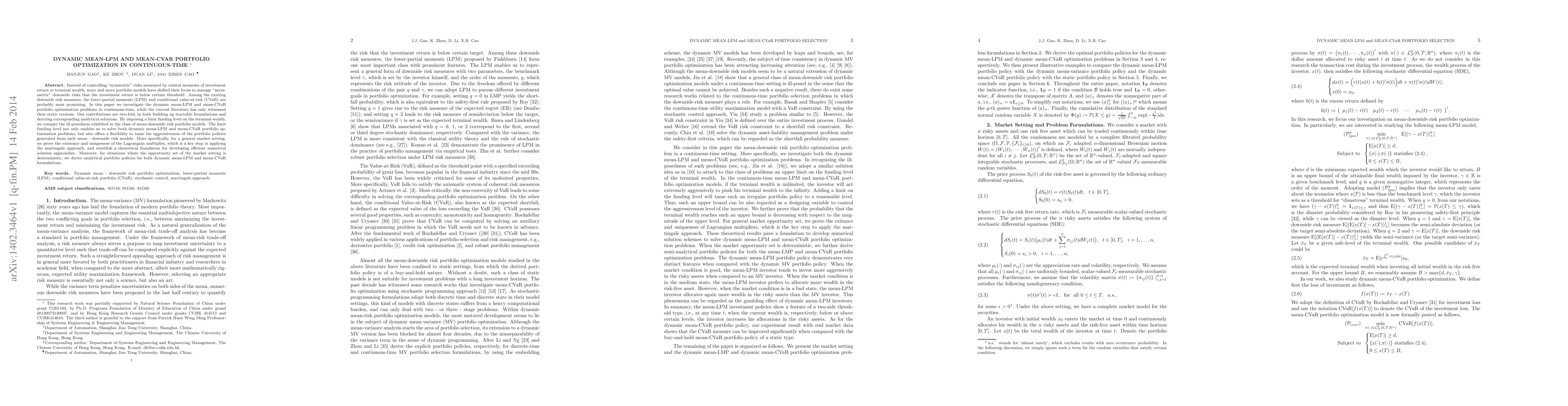 This paper develops dynamic continuous-time portfolio optimization models based on mean-LPM and mean-CVaR to manage asymmetric downside risks. It provides tractable formulations and analytical solutions, solving the ill-posedness issue by imposing a limit funding level and establishing a theoretical foundation for numerical solutions, along with deriving analytical policies for deterministic market settings.