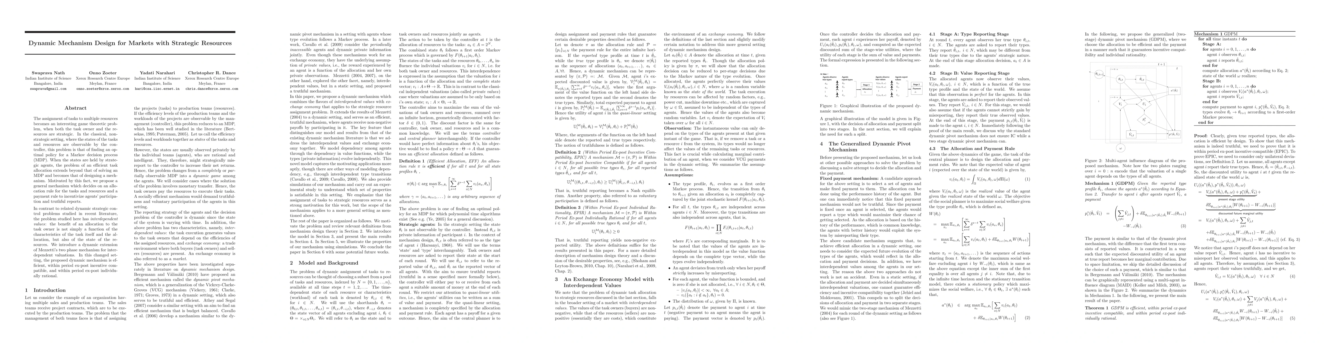 This paper proposes a dynamic mechanism design for markets where both task owners and resources are strategic, introducing a mechanism that allocates tasks and sets payments to incentivize truthful reporting. The proposed dynamic extension of Mezzetti's two-phase mechanism ensures efficiency, ex-post incentive compatibility, and individual rationality, addressing interdependent values in task allocation.