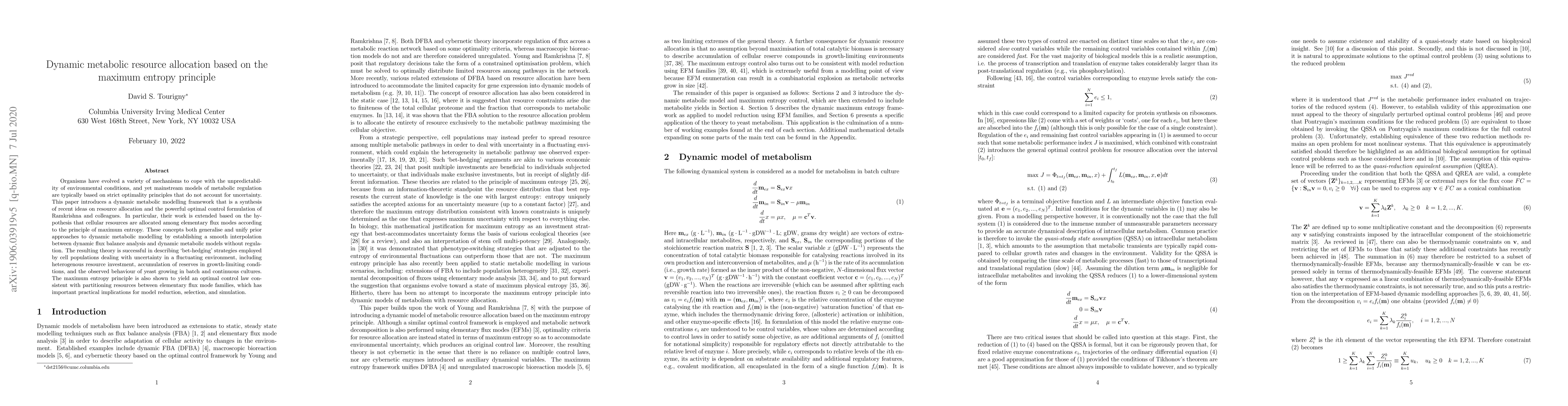 A new metabolic modeling framework uses the maximum entropy principle to allocate cellular resources in response to environmental uncertainty, successfully describing 'bet-hedging' strategies and optimizing resource partitioning.