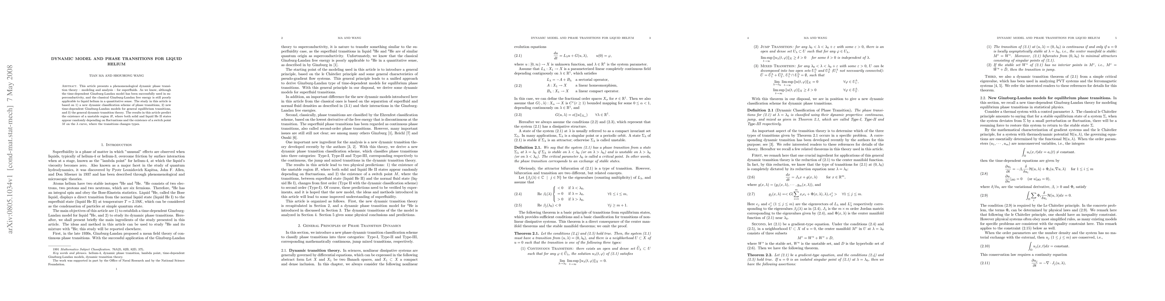 This paper introduces a new dynamic phase transition theory for superfluids, proposing a time-dependent Ginzburg-Landau model that better applies to liquid helium than classical models. It predicts an unstable region H and a switch point M on the lambda-curve where phase transition types change.