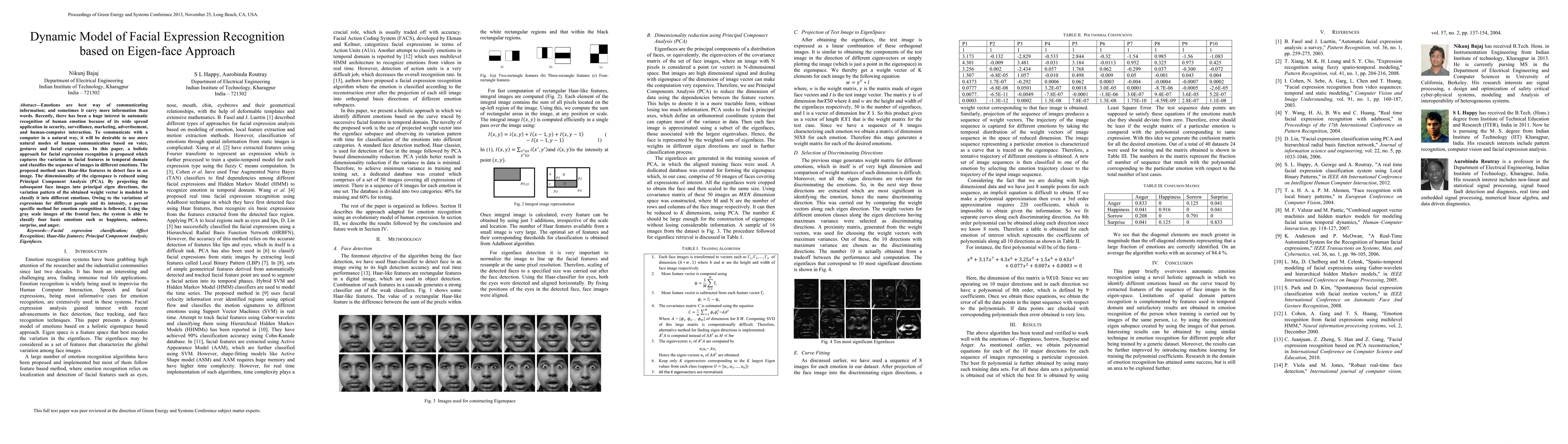 This paper proposes a dynamic model for facial expression recognition using eigen-face and PCA, employing Haar-like features for face detection and classifying sequences of images into four basic emotions: happiness, sadness, surprise, and anger. The method models the variation pattern of weight vectors in principal eigen directions to achieve person-specific emotion recognition.