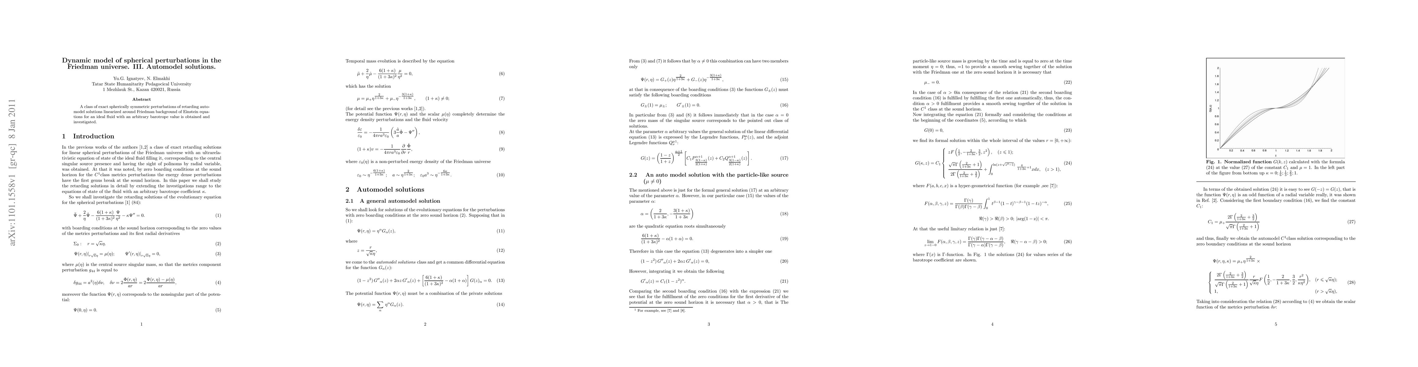 Summary: This paper investigates exact spherically symmetric perturbations of automodel solutions in the context of Friedman's universe, focusing on linearizations around an ideal fluid's background in Einstein's equations with arbitrary barotrope values. The study aims to understand the dynamics of these perturbations.