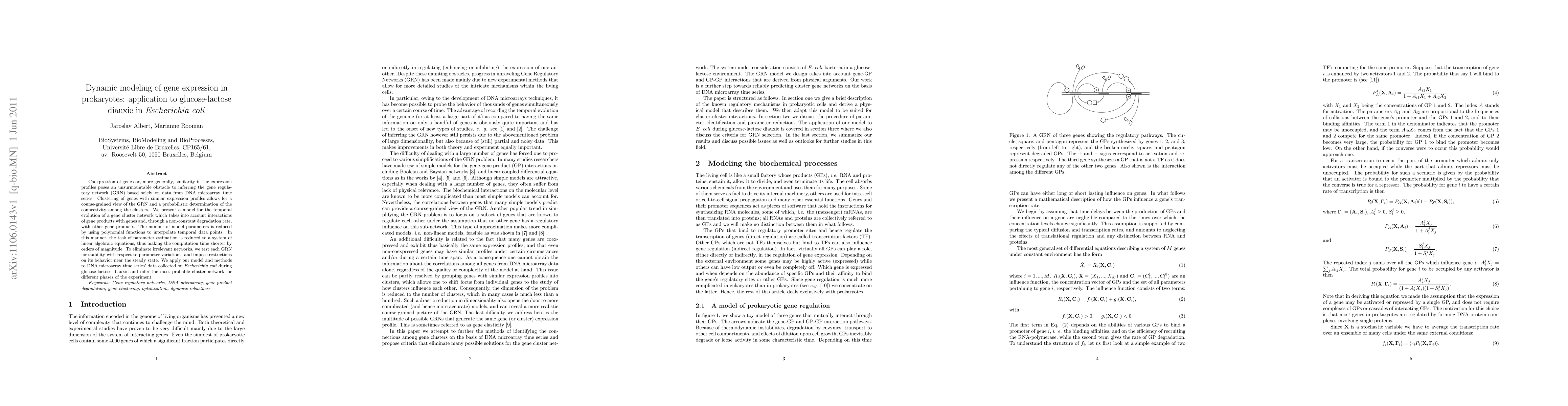 This paper proposes a dynamic modeling approach to infer gene regulatory networks in prokaryotes, specifically focusing on Escherichia coli during glucose-lactose diauxie. The model clusters genes based on expression profiles and uses polynomial functions to reduce parameter estimation complexity, enabling efficient inference of the most probable gene regulatory network.