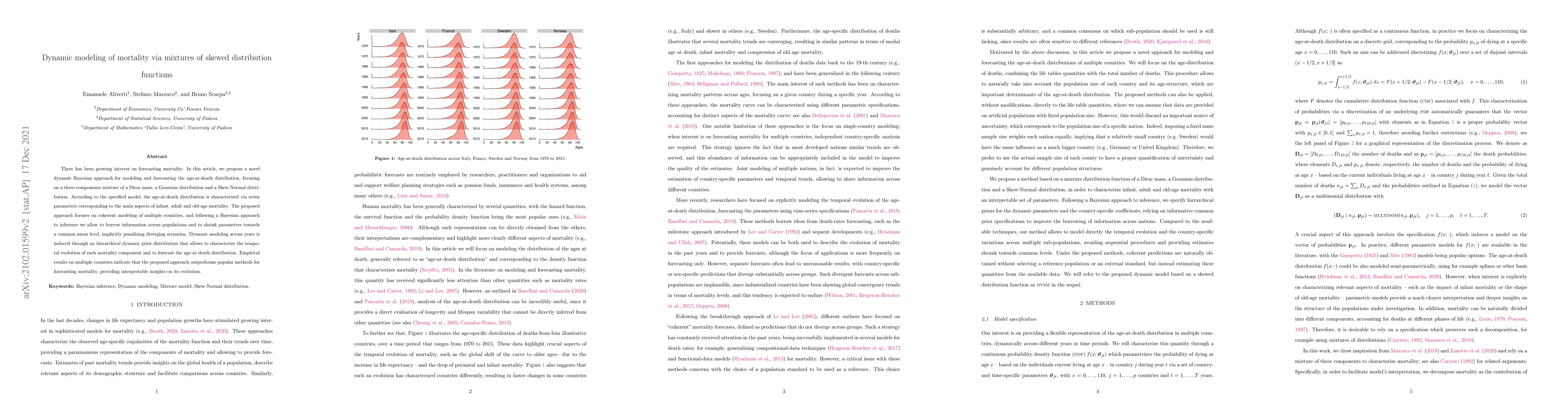 This paper proposes a dynamic Bayesian model for forecasting mortality using a three-component mixture of skewed distributions, capturing infant, adult, and old-age mortality. The approach outperforms existing methods and provides interpretable insights into mortality trends.