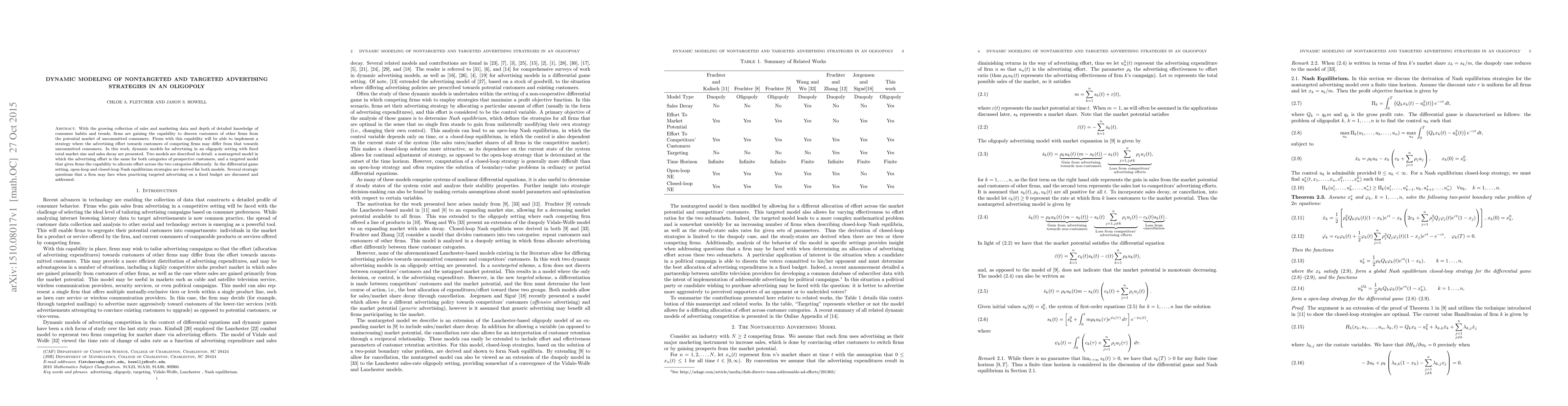 This paper presents dynamic models for targeted advertising in oligopoly settings, showing that firms can differentiate their efforts between customers of competing firms and uncommitted consumers. The findings provide insights into strategic questions firms face when allocating resources to targeted advertising on a fixed budget.