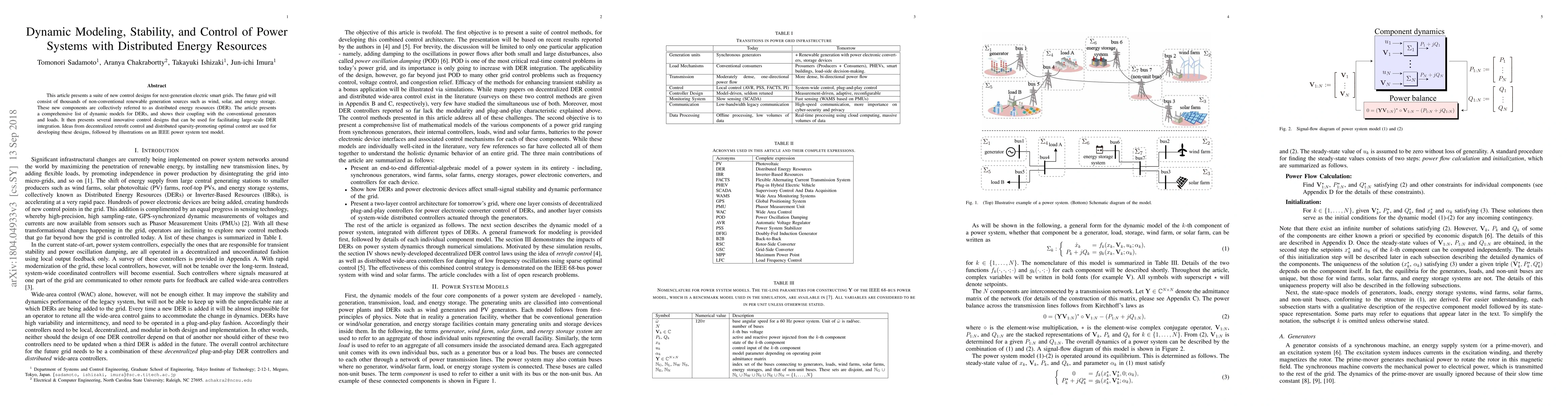 This paper introduces advanced control designs for integrating distributed energy resources (DERs) into smart grids, featuring dynamic models for DERs and innovative control strategies based on decentralized retrofit and distributed sparsity-promoting optimal control, illustrated through an IEEE power system test model.