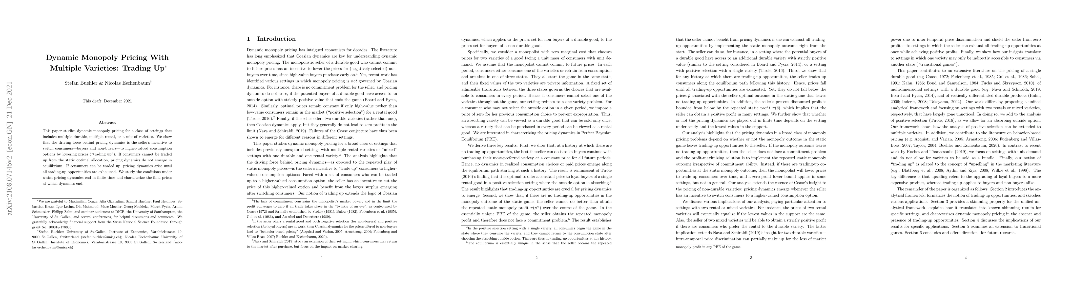 This paper examines dynamic monopoly pricing strategies for products with multiple varieties, showing that pricing changes occur to encourage consumers to "trade up" to higher-value options. Pricing dynamics cease when all trading-up opportunities are exhausted, and the paper characterizes the conditions for finite-time pricing stability and final prices.