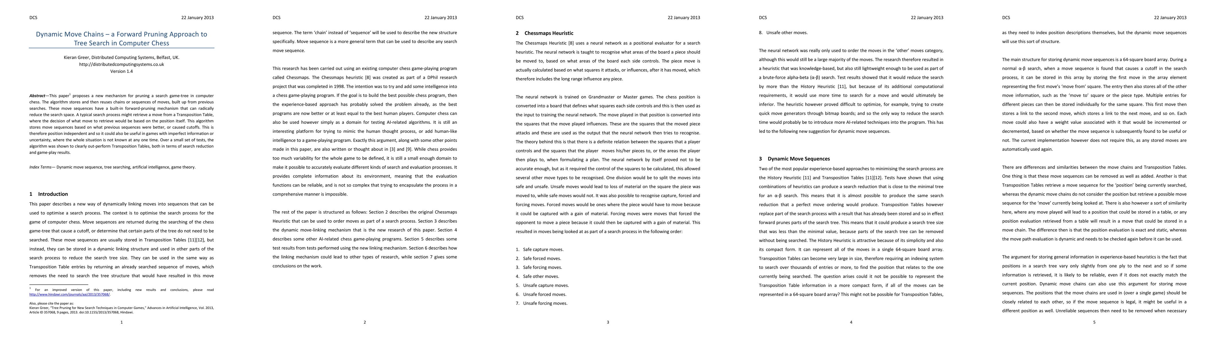 This paper introduces a forward pruning approach in computer chess that reuses dynamic move chains to significantly reduce the search space. The algorithm outperforms traditional Transposition Tables by storing and leveraging successful move sequences, demonstrating better search reduction and game outcomes.