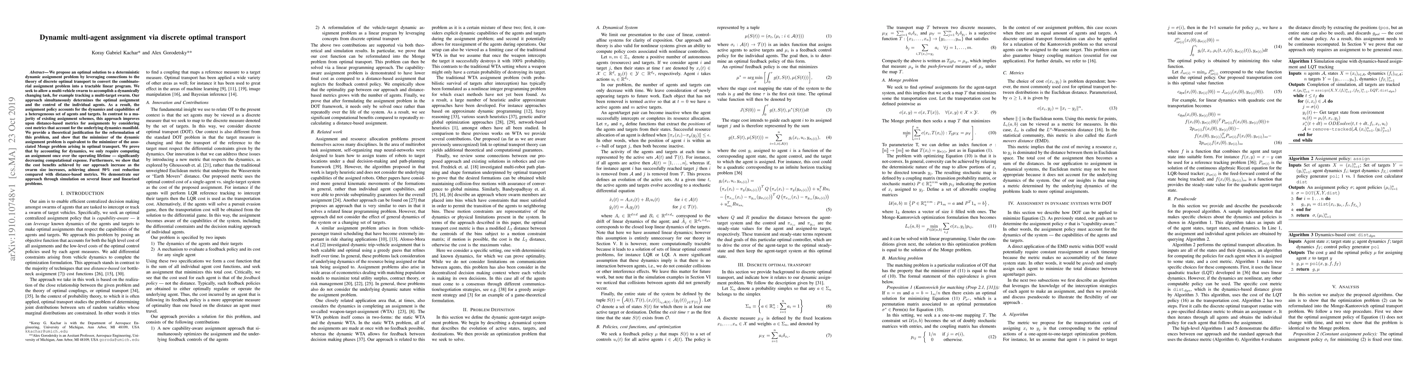 We propose an optimal solution to a deterministic dynamic assignment problem by leveraging connections to the theory of discrete optimal transport to convert the combinatorial assignment problem into a tractable linear program. We seek to allow a multi-vehicle swarm to accomplish a dynamically changing task, for example tracking a multi-target swarm. Our approach simultaneously determines the optimal assignment and the control of the individual agents. As a result, the assignment policy accounts for the dynamics and capabilities of a heterogeneous set of agents and targets. In contrast to a majority of existing assignment schemes, this approach improves upon distance-based metrics for assignments by considering cost metrics that account for the underlying dynamics manifold. We provide a theoretical justification for the reformulation of this problem, and show that the minimizer of the dynamic assignment problem is equivalent to the minimizer of the associated Monge problem arising in optimal transport. We prove that by accounting for dynamics, we only require computing an assignment once over the operating lifetime --- significantly decreasing computational expense. Furthermore, we show that the cost benefits achieved by our approach increase as the swarm size increases, achieving almost 50\% cost reduction compared with distance-based metrics. We demonstrate our approach through simulation on several linear and linearized problems.
