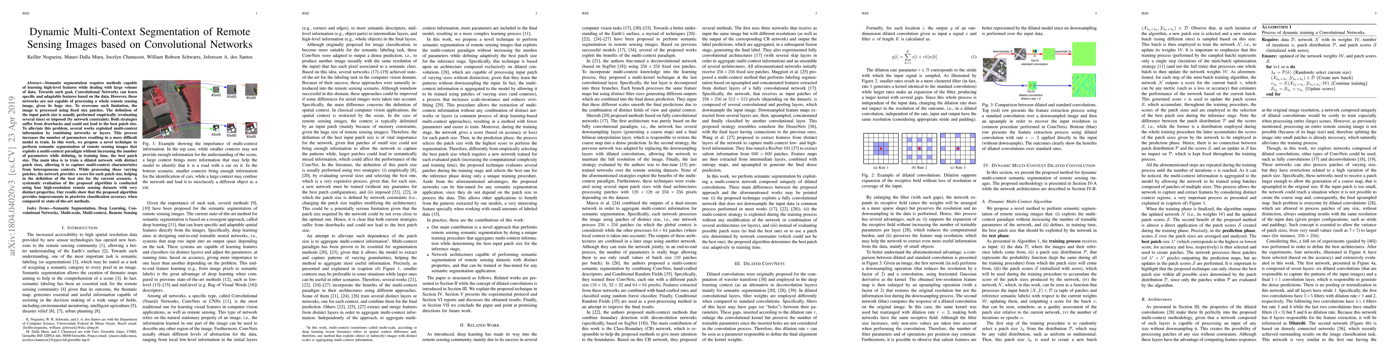 The main technical contribution is a dilated convolutional network architecture that dynamically selects the best patch size during training, enhancing the segmentation of remote sensing images.