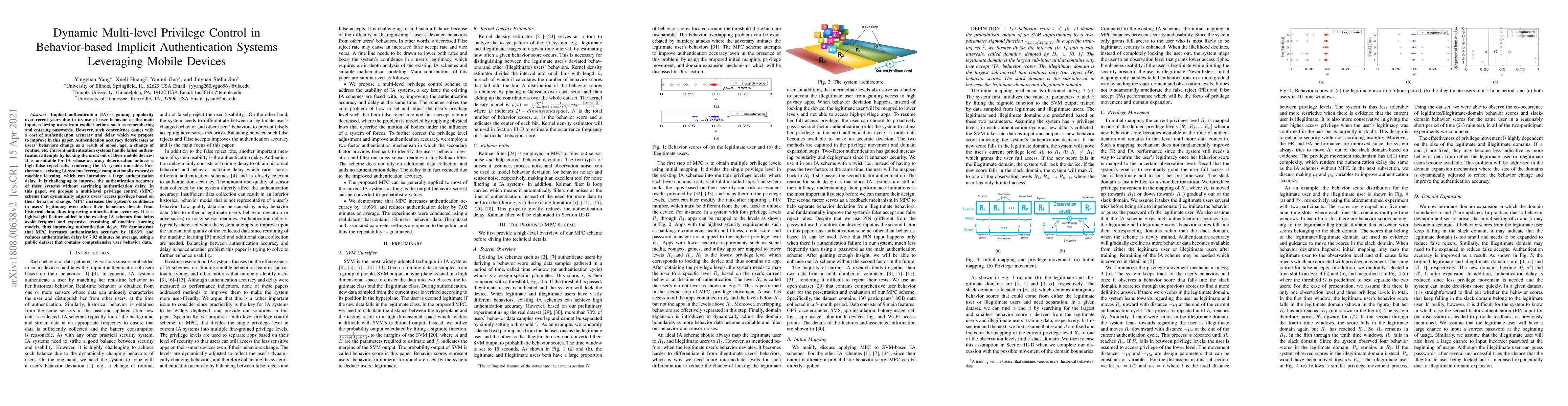 This paper proposes a multi-level privilege control (MPC) scheme to enhance the accuracy and reduce the delay in behavior-based implicit authentication systems on mobile devices. MPC dynamically adjusts user access privileges based on behavior changes, improving accuracy without frequent and costly retraining of machine learning models.